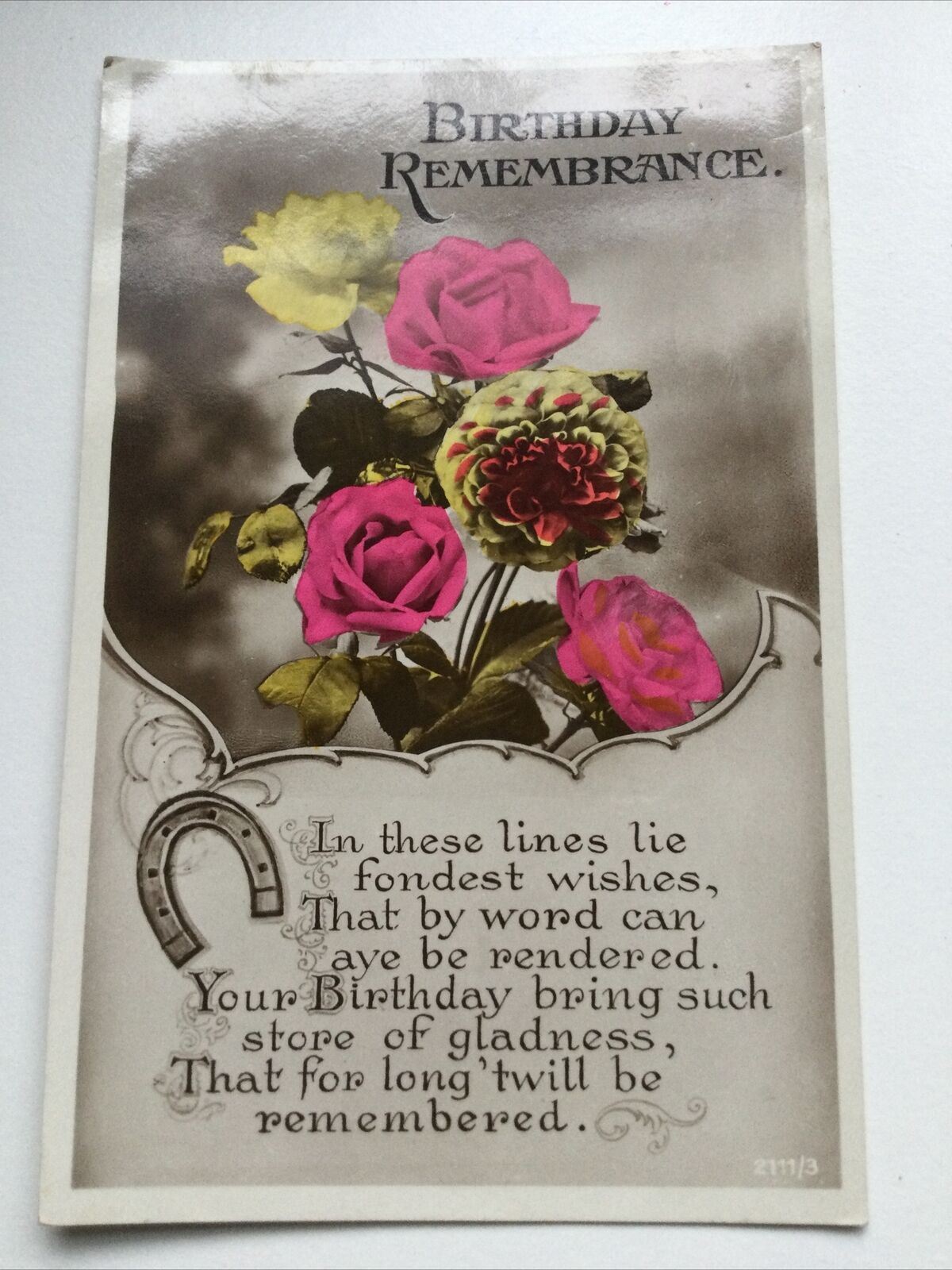 Vintage Birthday Greetings Postcard Pink Roses Lucky Horseshoe 1931 Pretty Poem
