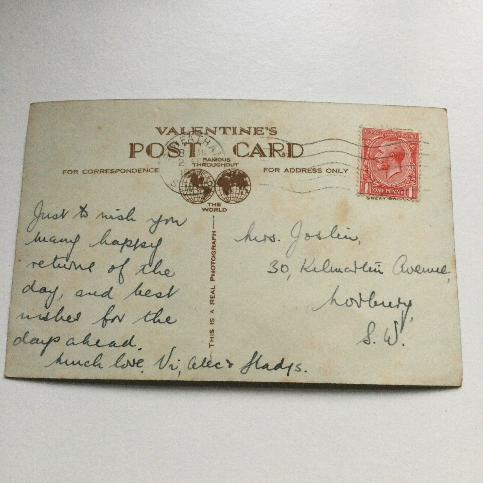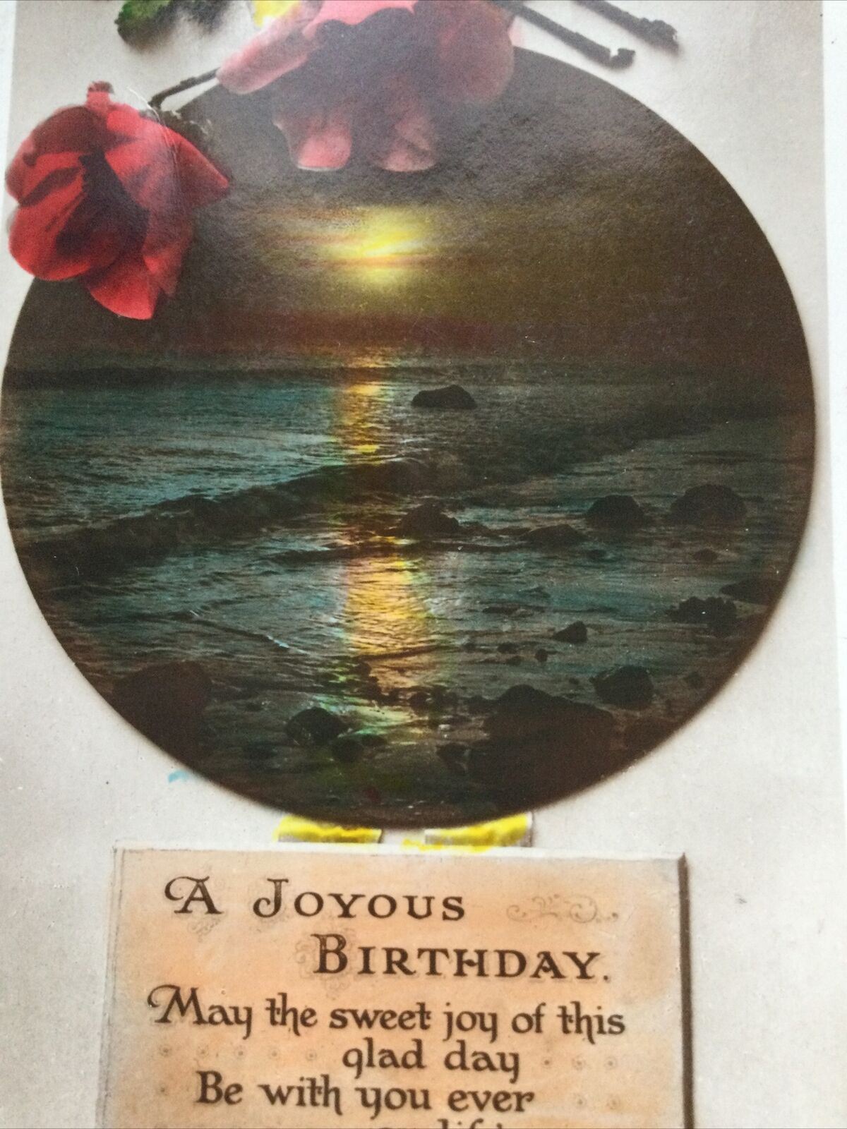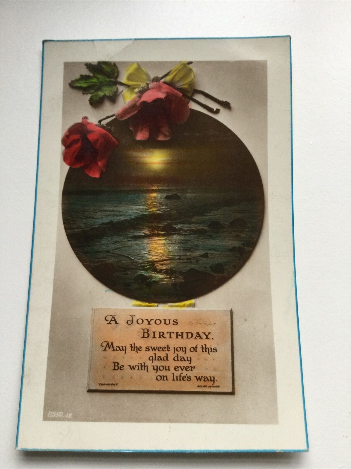 Vintage Birthday Greetings Postcard Scenic Seascape Sunset Dusk Anemones Poem