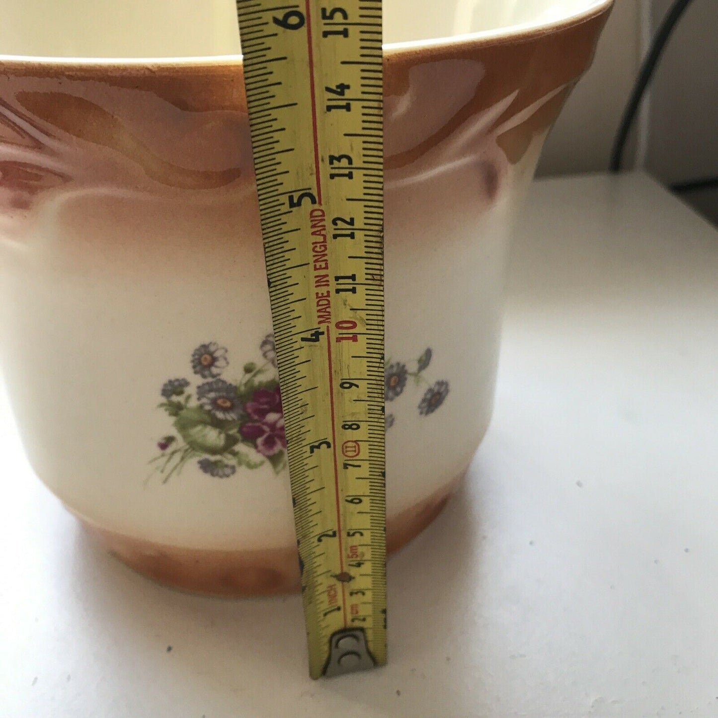 Vintage Brown Cream Ceramic Flower Plant Pot Pink Floral Indoor Planter Romania
