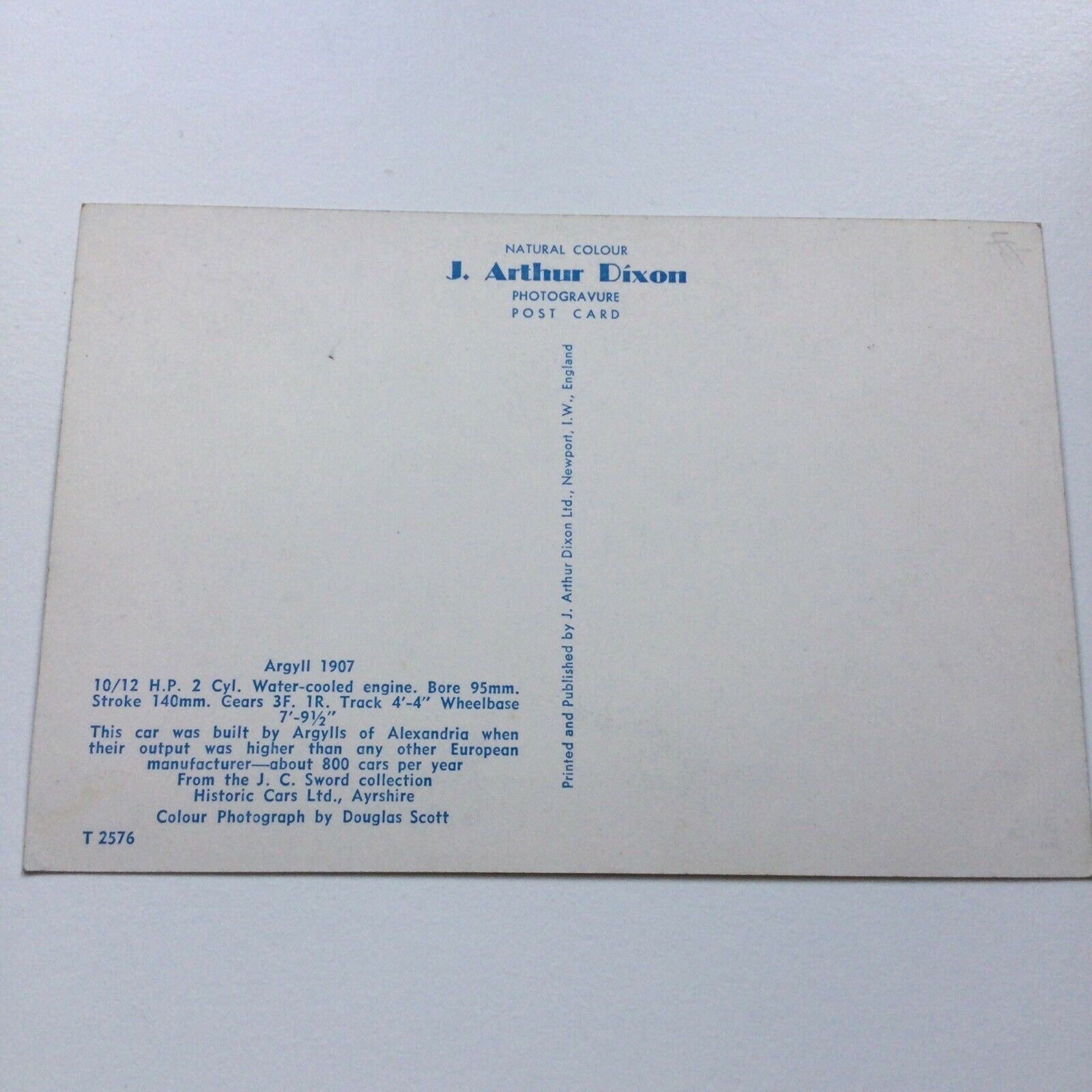 Vintage Car Postcard - 1907 ARGYLL - Argylls Of Alexandria - J C Sword Collection