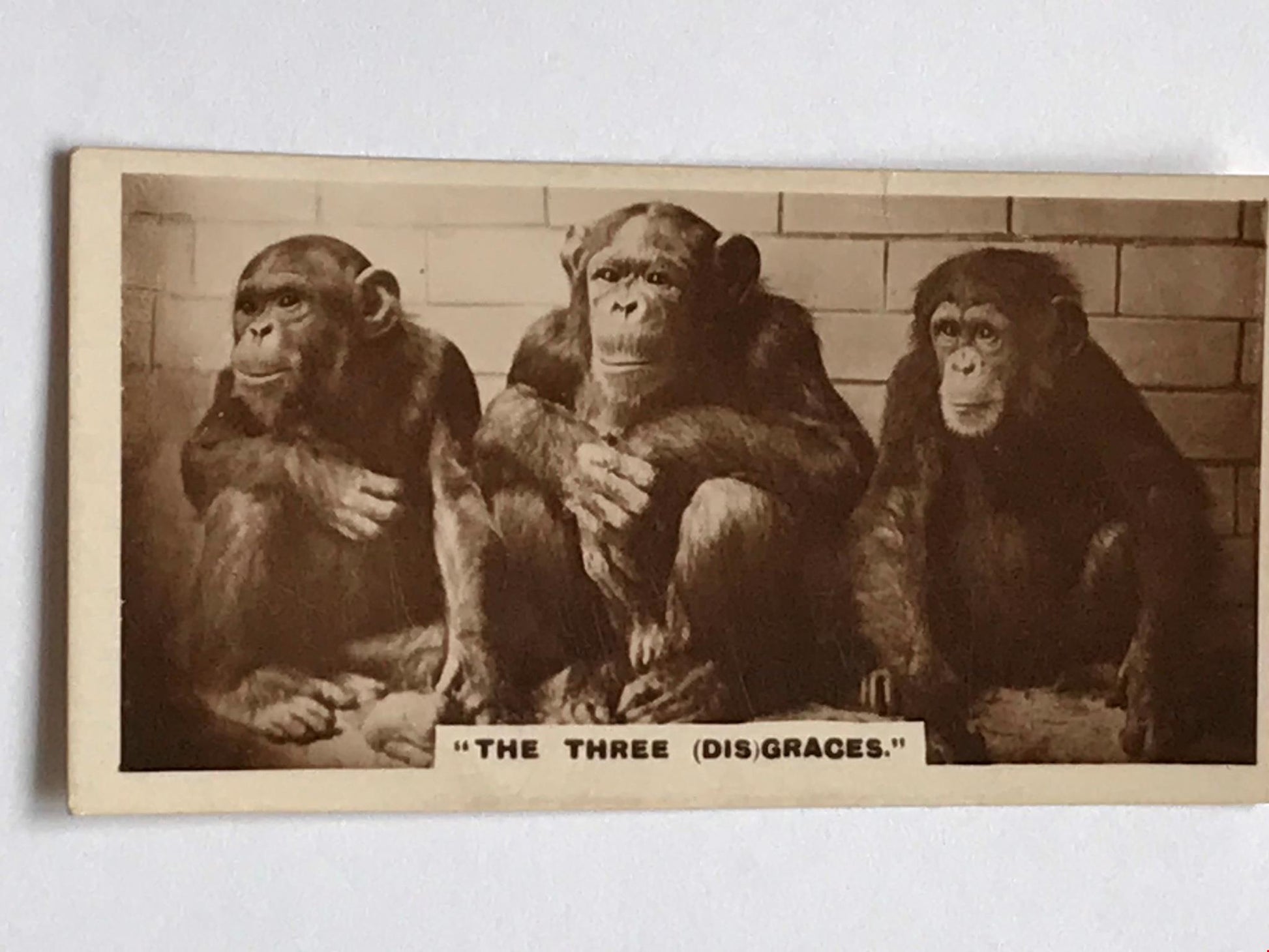VINTAGE CHIMPS PHOTO De Reszke Cigarette Card ‘The 3 (dis)Graces’ series 1 no.27