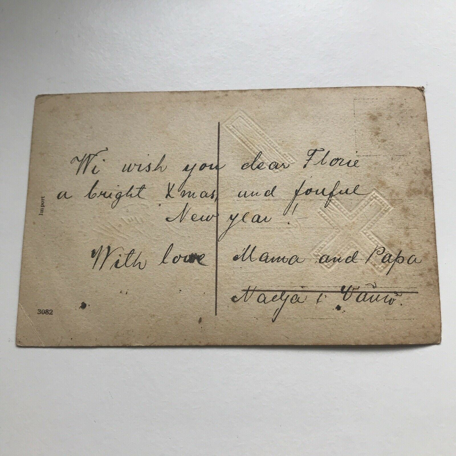 Vintage CHRISTMAS postcard FINNISH FINLAND HAUSKAA JOULUA Angel Carrying Cross