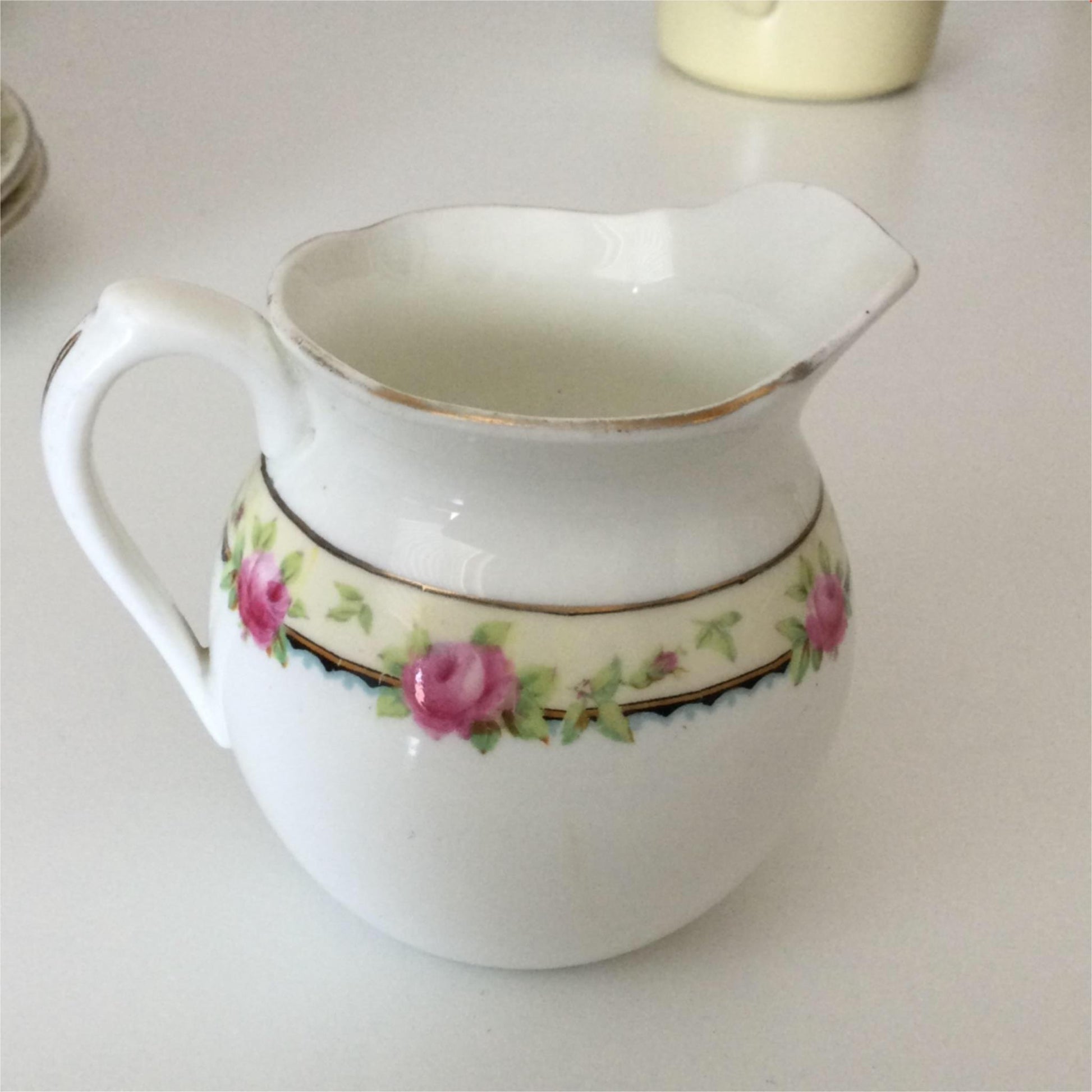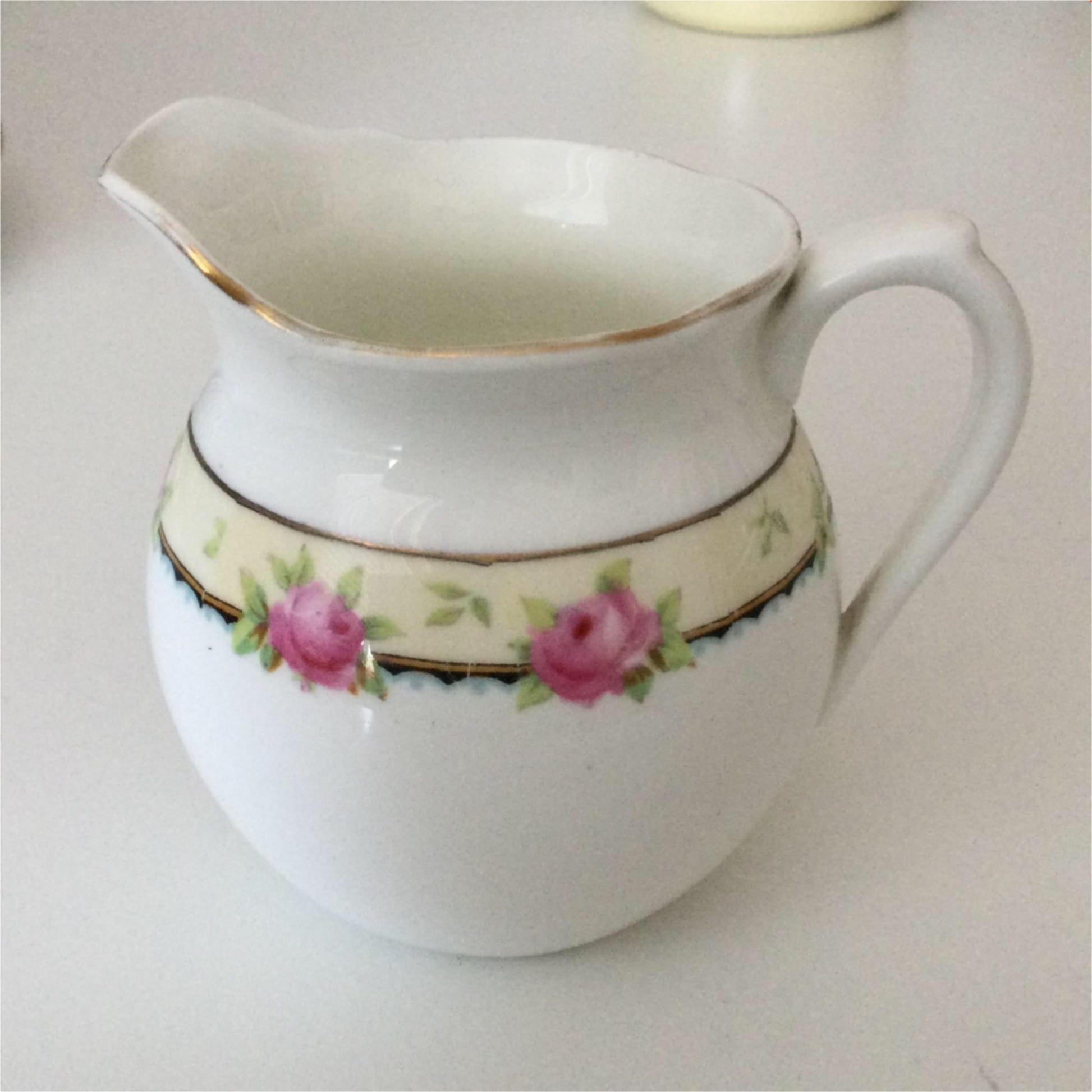 Vintage Creamer Small Jug Aynsley pink rose design yellow band A 3852 6 floral