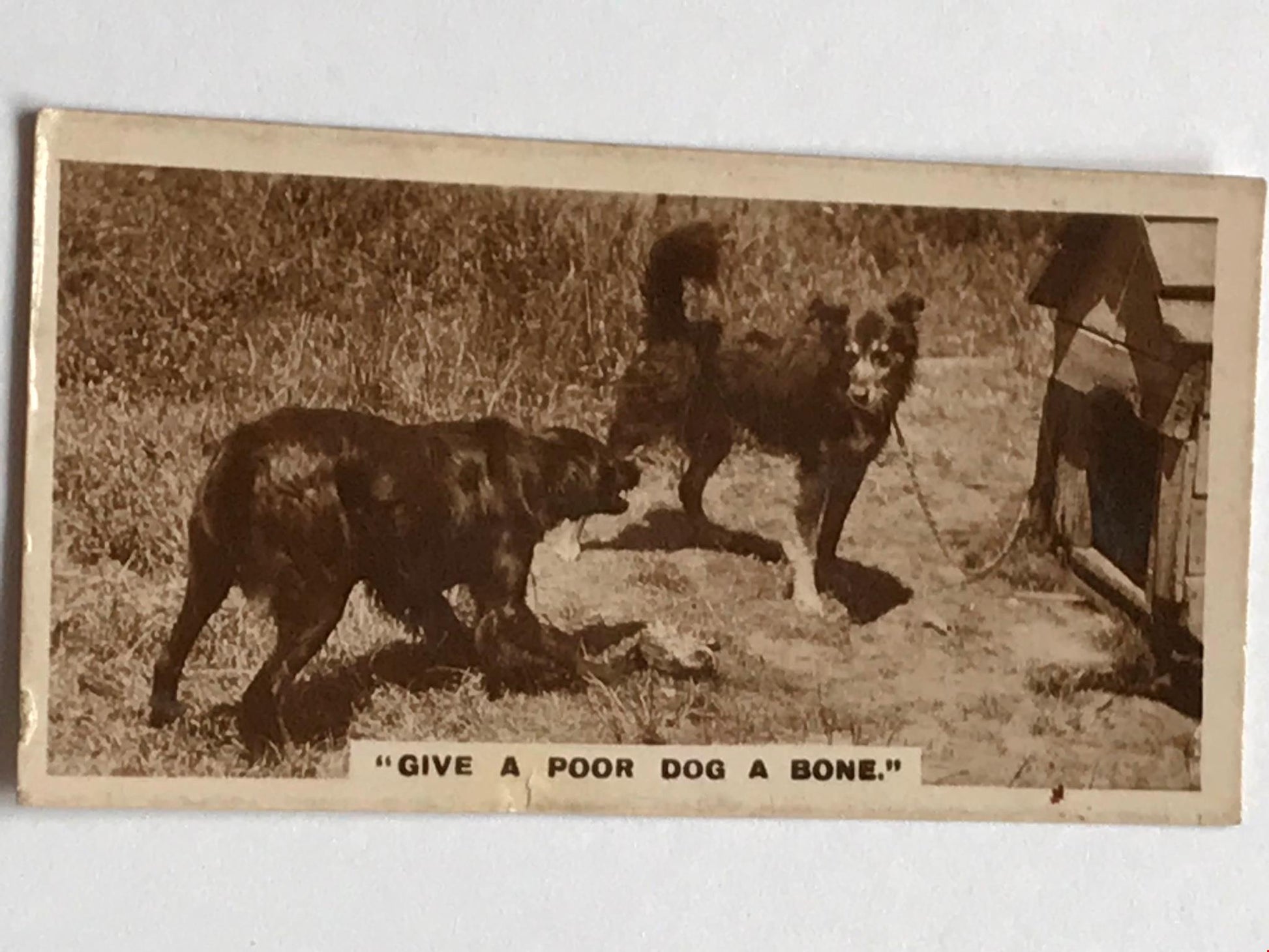 De Reszke Cigarette Card - Series 1 No. 4 - 'Give A Poor Dog A Bone' - Dogs with bone by kennel