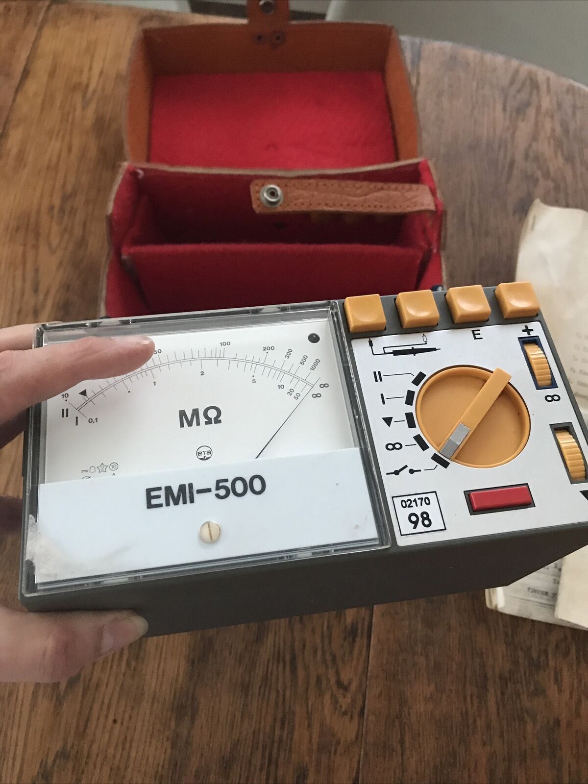 Vintage Electronic Insulation Tester EMI-500 With Case & Original Instructions 70s 80s Obrme Metrol