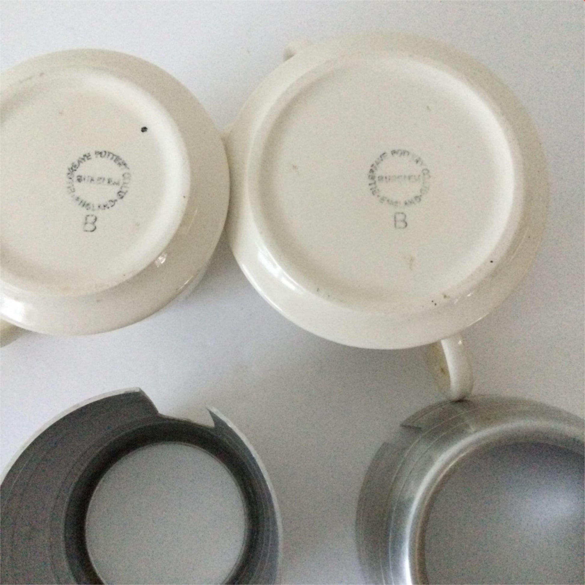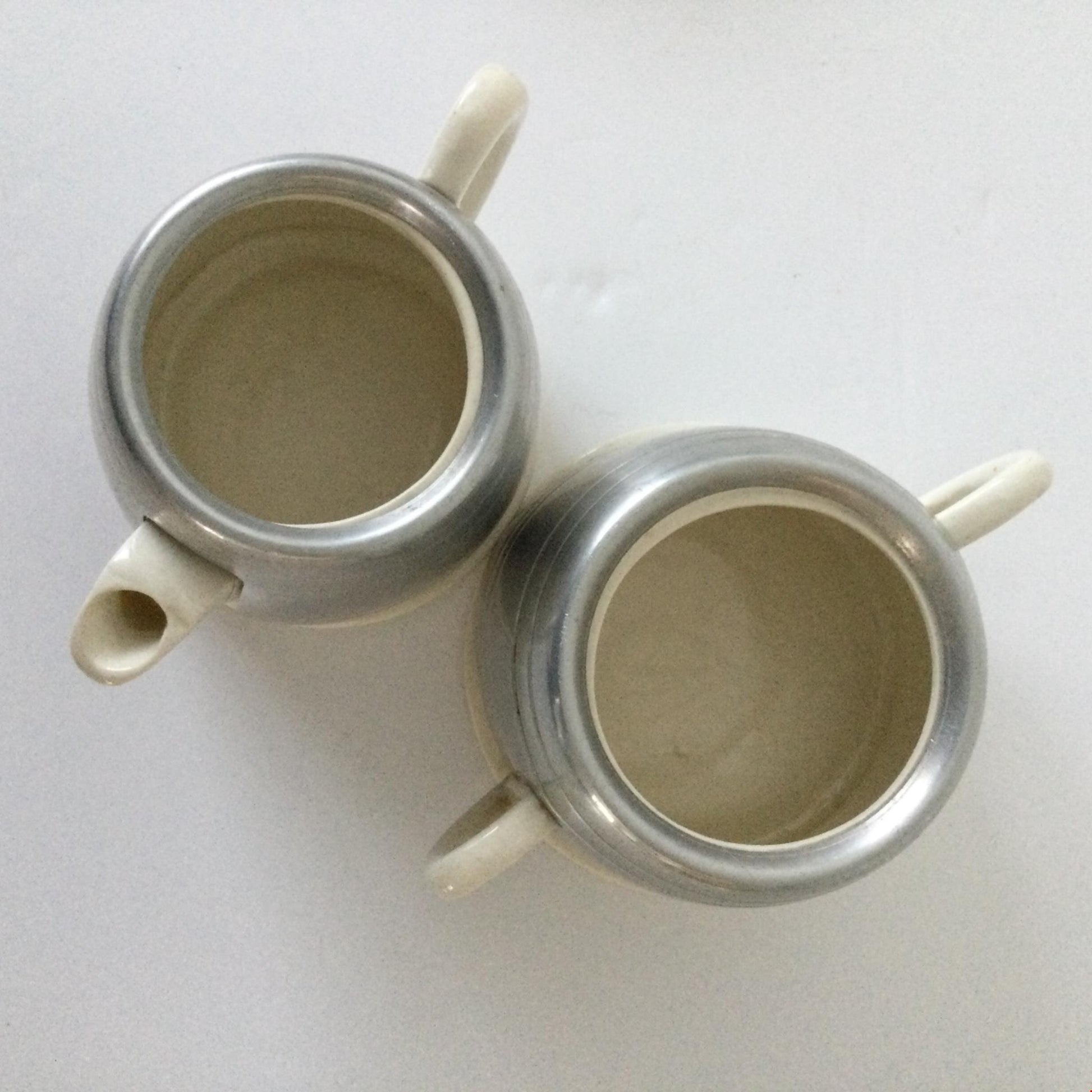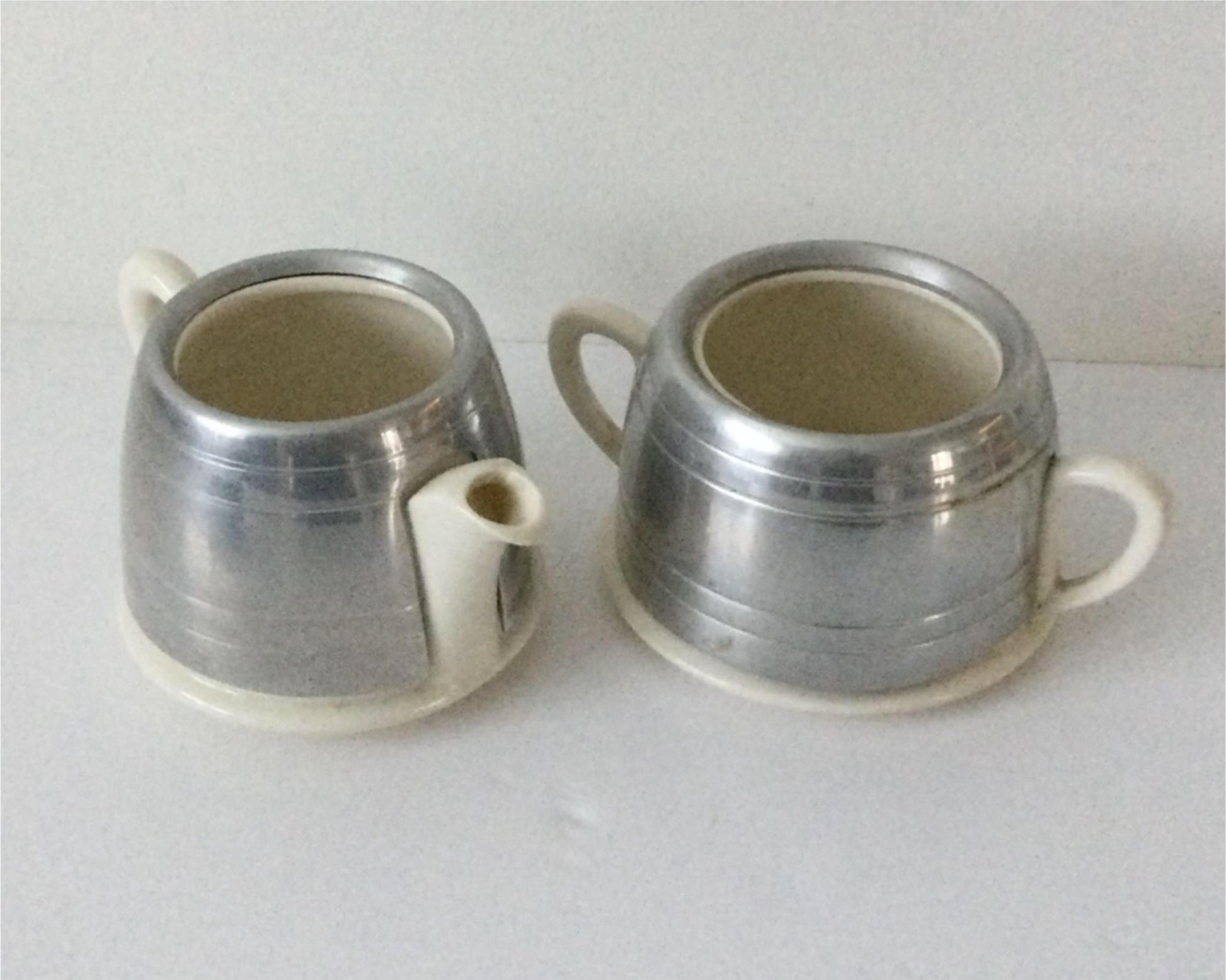 VINTAGE ELLGREAVE BURSLEM MILK JUG / CREAMER & SUGAR BOWL. ALUMINIUM COVERS