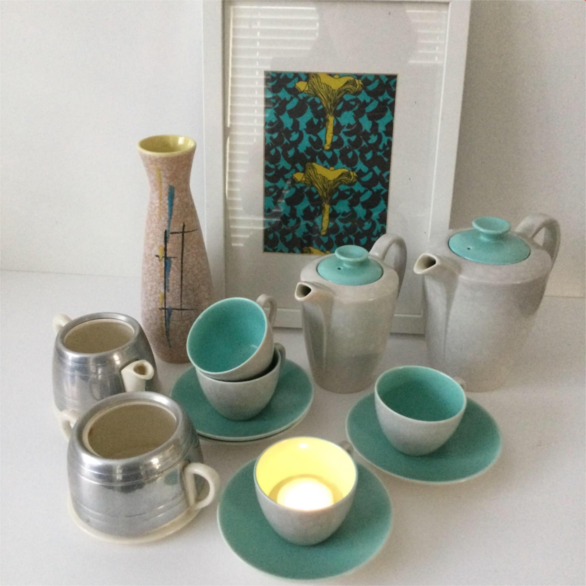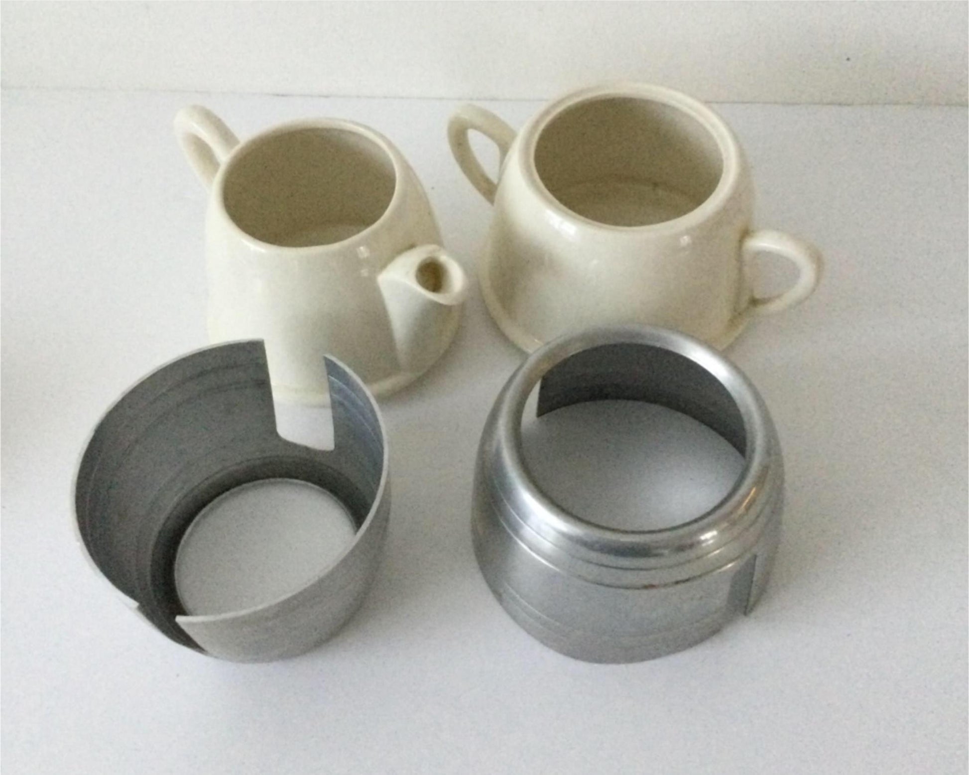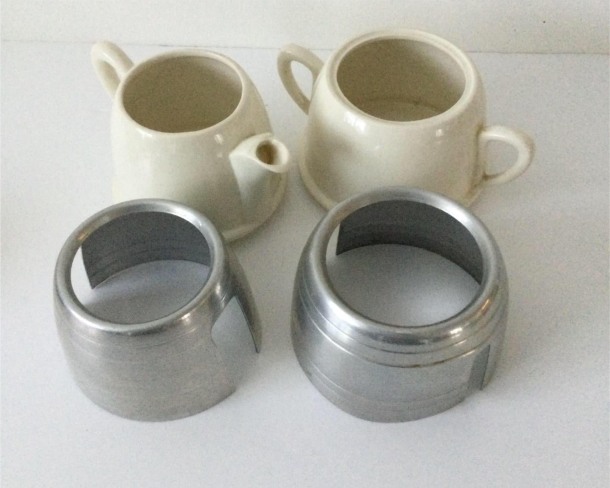 VINTAGE ELLGREAVE BURSLEM MILK JUG / CREAMER & SUGAR BOWL. ALUMINIUM COVERS