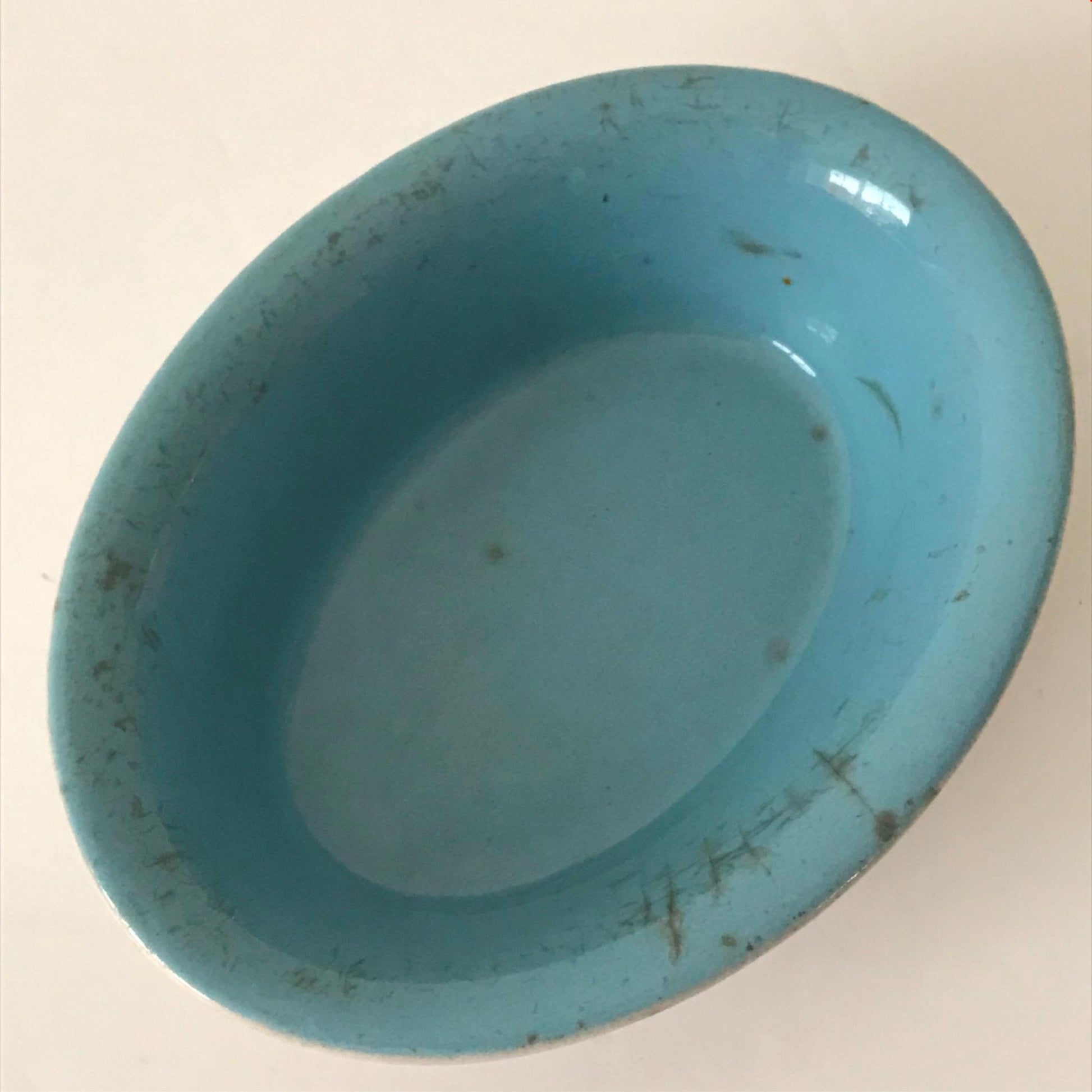 Vintage Individual Pie Dish 16cm Blue and Cream Rustic Farmhouse Ovenware Retro