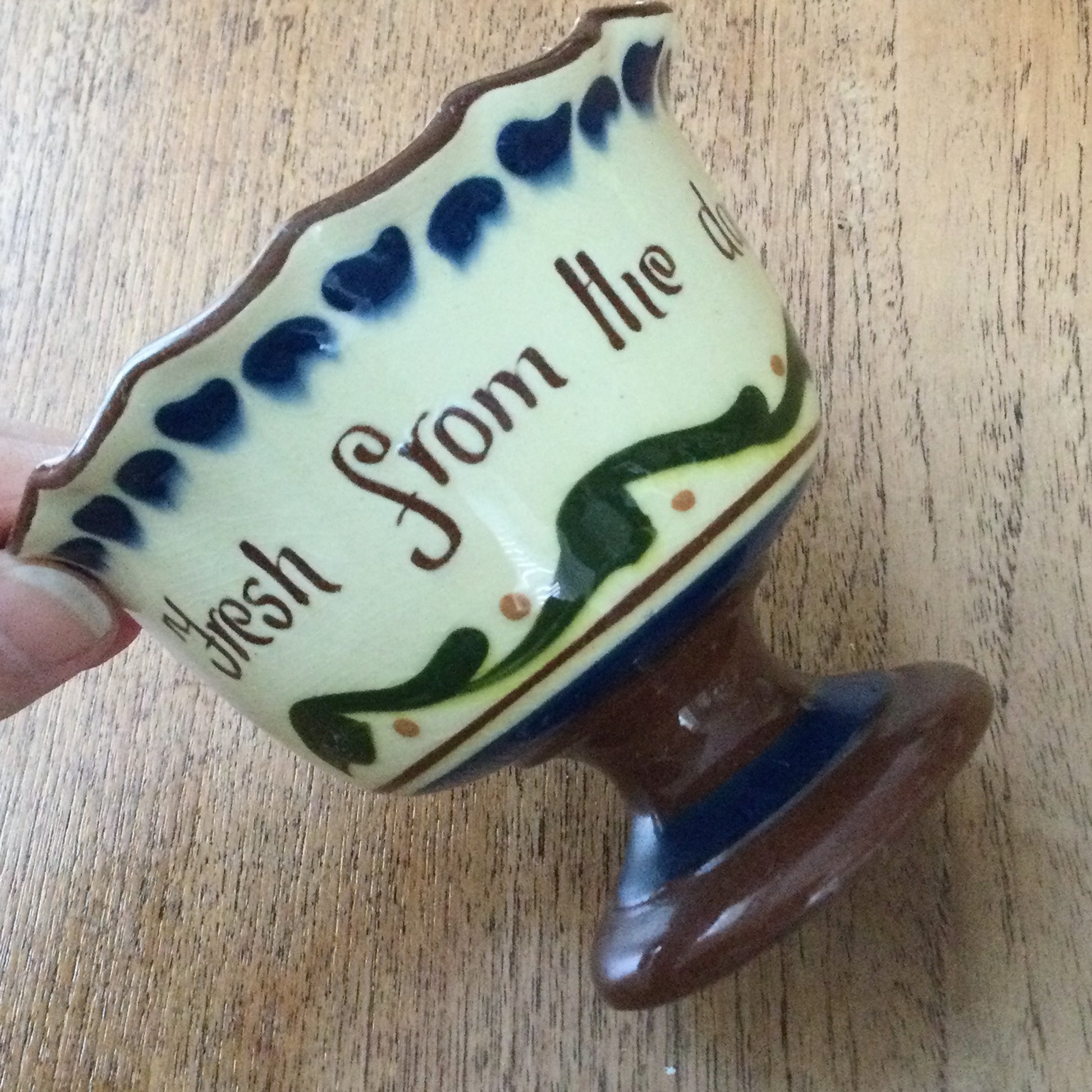 Vintage Longpark Torquay Devon Motto Ware Pedestal Cream Bowl ''Fresh From The Dairy'' Art Nouveau design