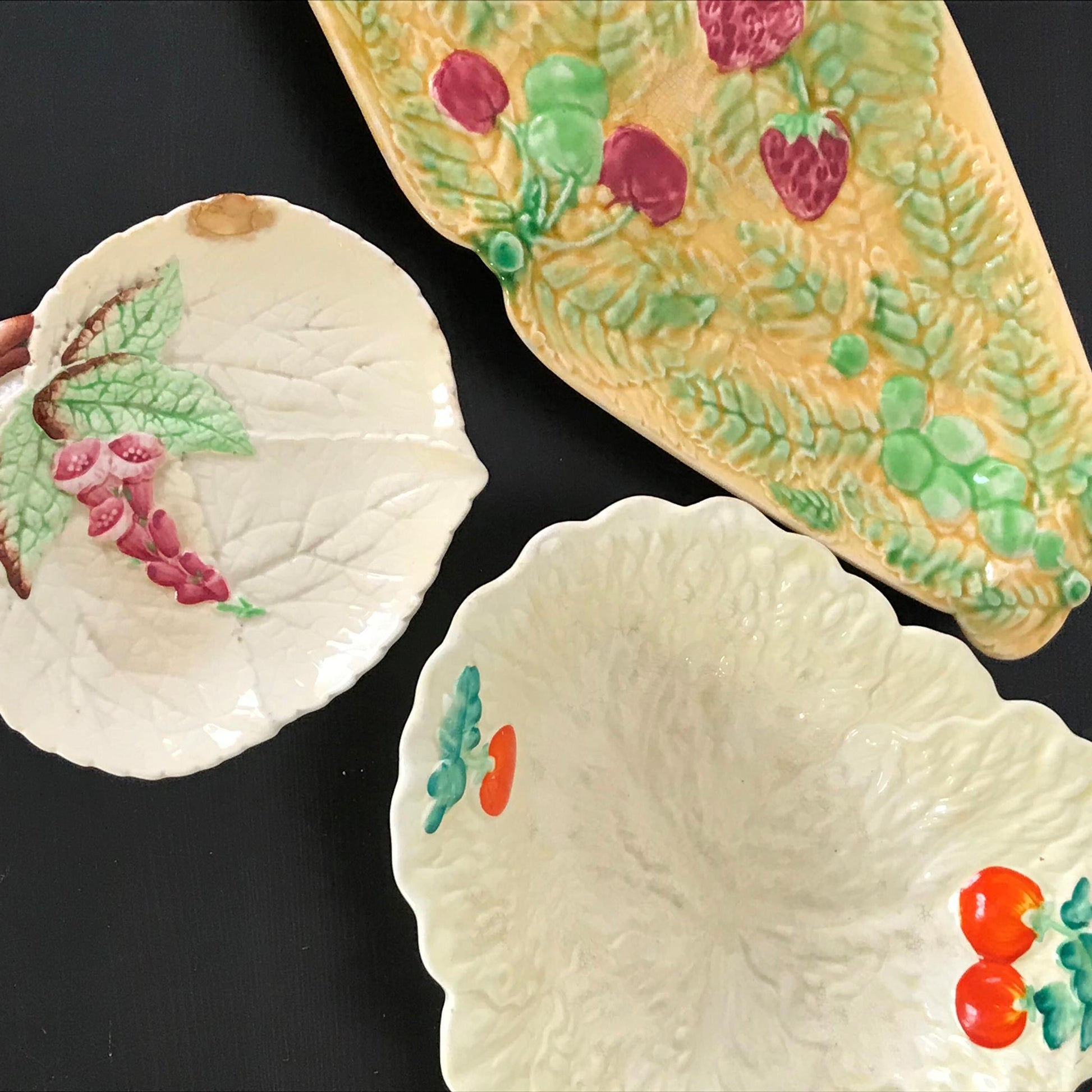 Vintage Majolica Serving Plate Berry Design Shorter and Son length 37cm