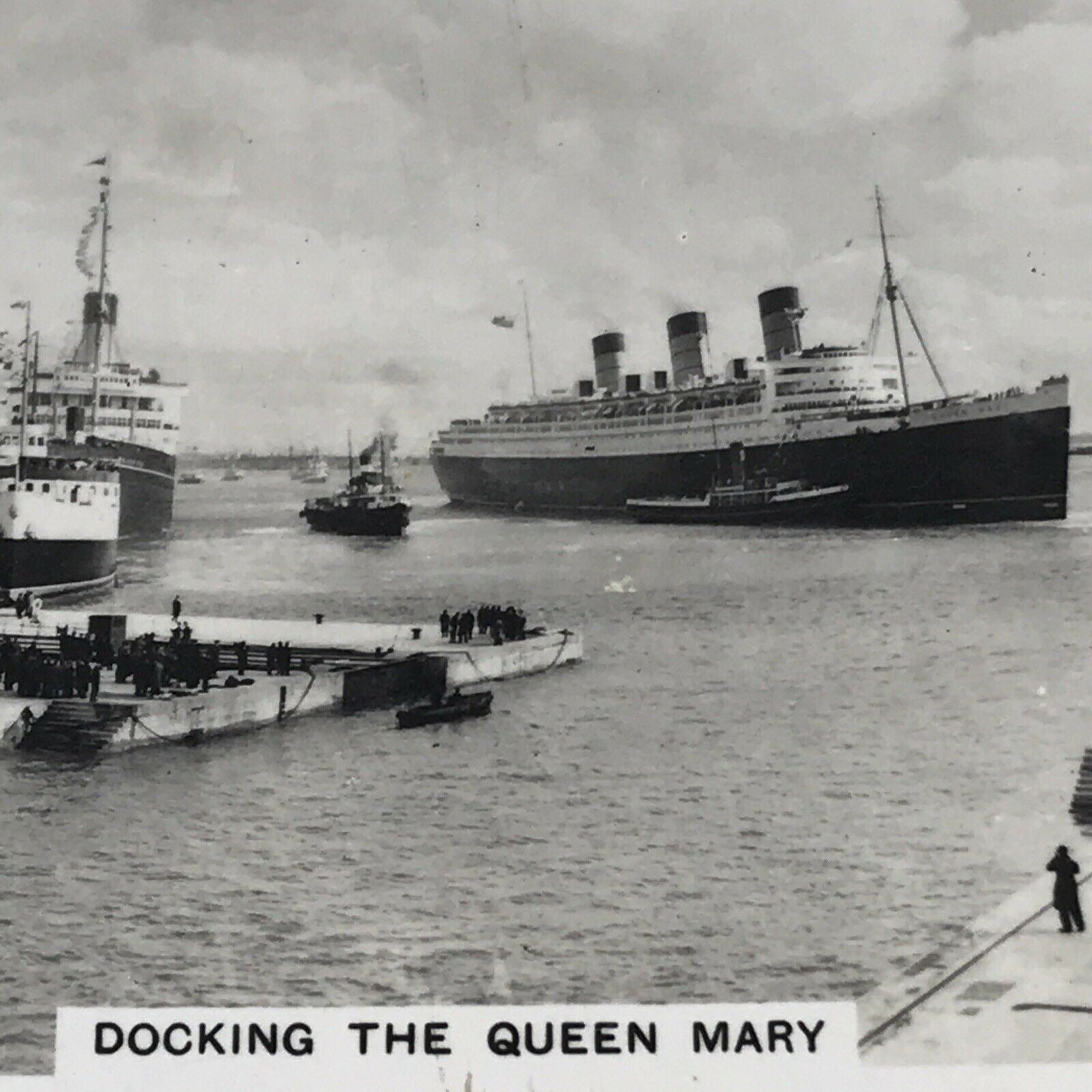 Vintage Cigarette Card - Senior Service - Coastwise - 1939 1930s No. 48 - Docking The Queen Mary Southampton No48