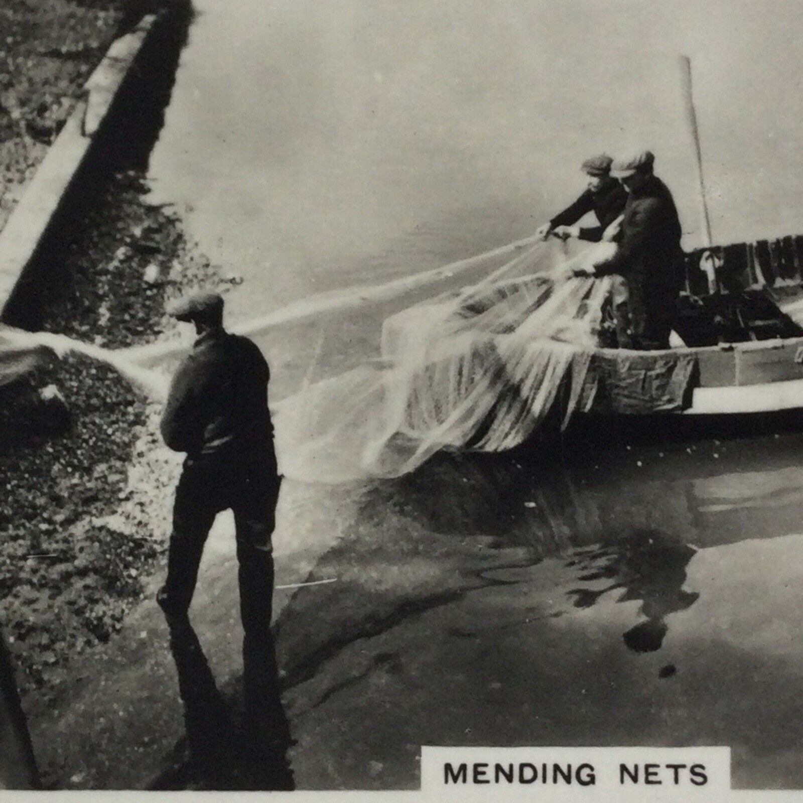 Vintage Photo Cigarette Card 1939 1930s MENDING NETS WELLS NORFOLK no36 Trawl