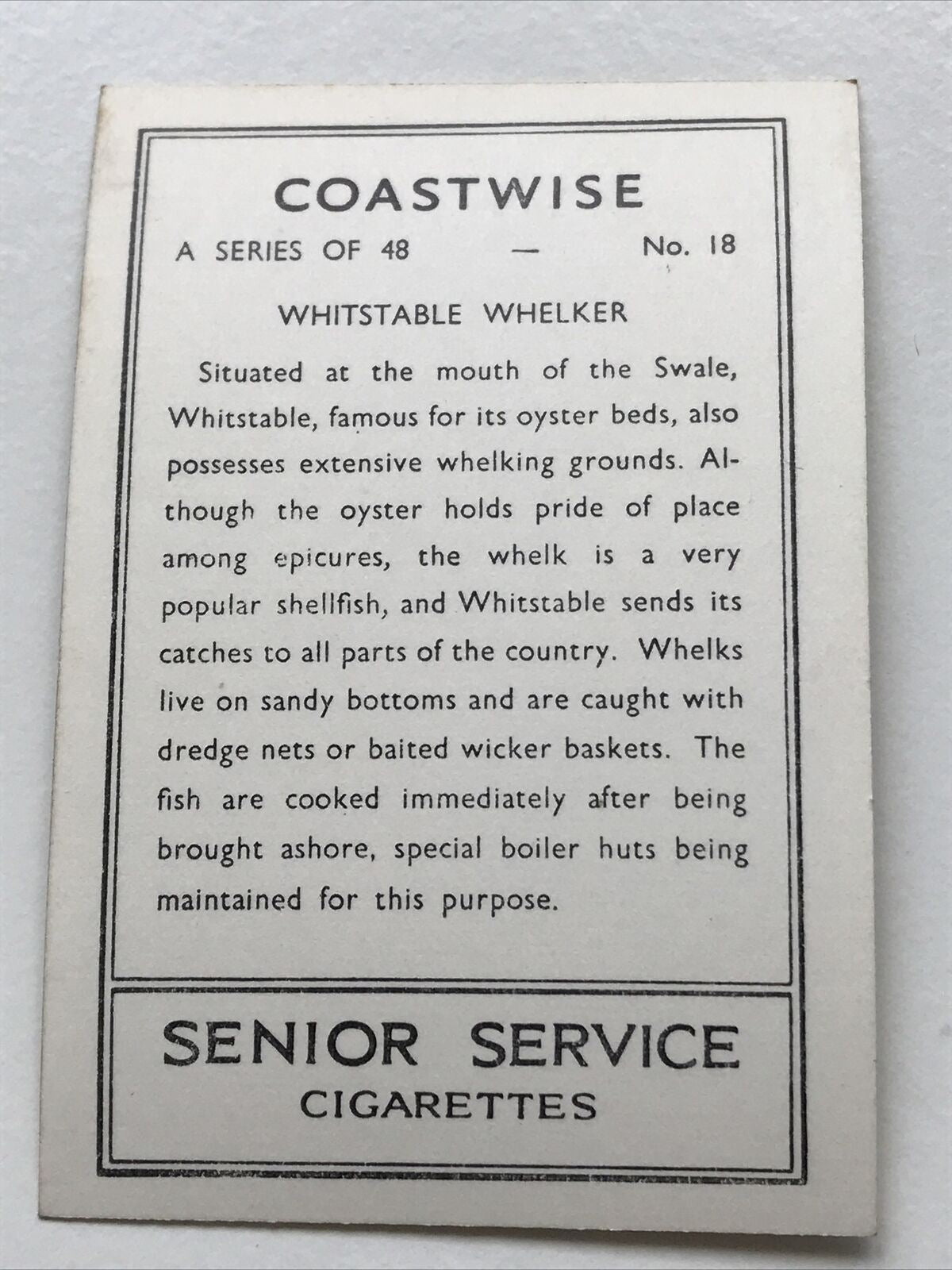 Vintage Photo Cigarette Card 1939 1930s Whitstable Whelker Senior Service No. 18