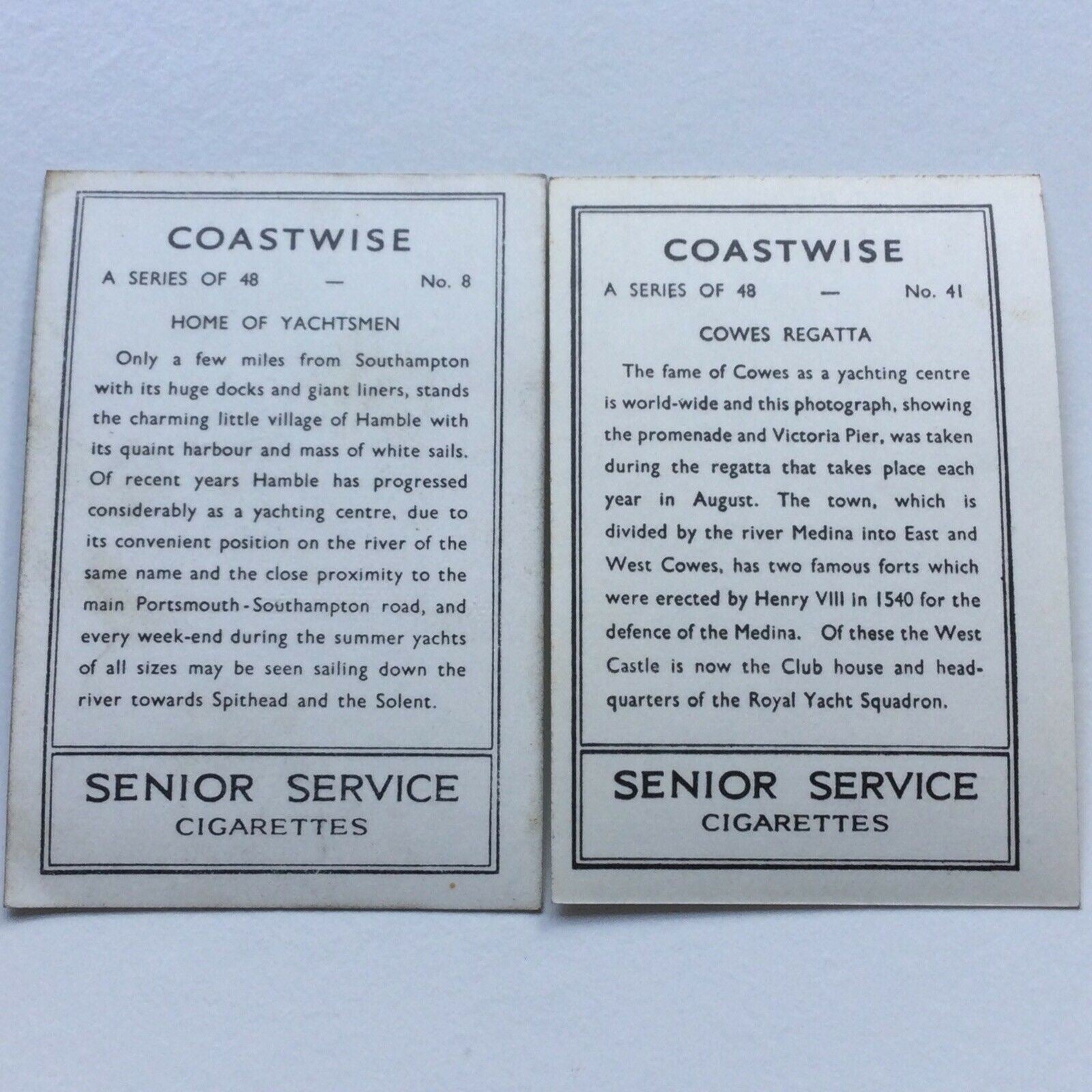 2 x Senior Service Cigarette Cards COASTWISE - Cowes Hamble - No. 8 No. 41 Yachts Yachting 1939 1930s