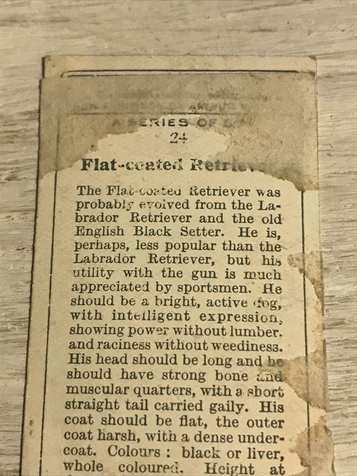 Vintage Players Cigarettes Card Dogs 24 Flat Coated Retriever DAMAGED