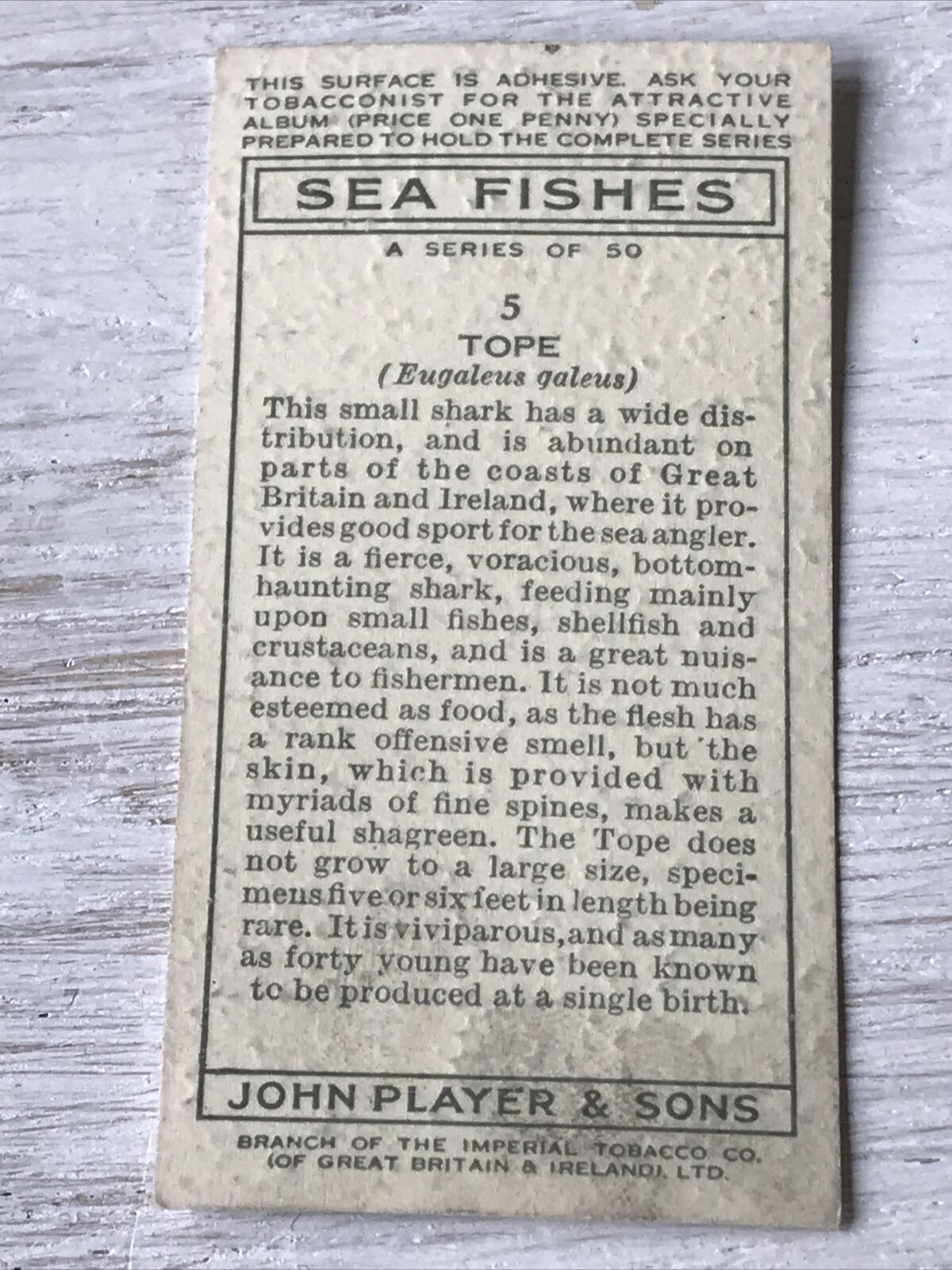 Vintage Players Cigarette Card - Sea Fishes - No. 2 Basking Shark - 1930s