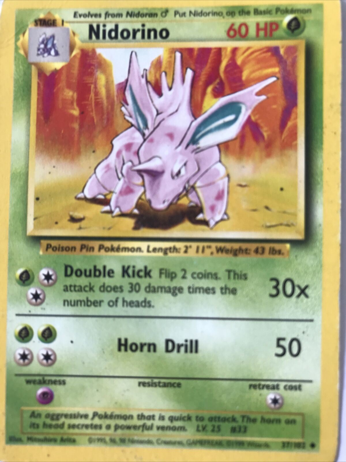 Vintage Pokemon card NIDORINO 37/102 Wizards 1999 Played WOTC Stage 1 Evolve