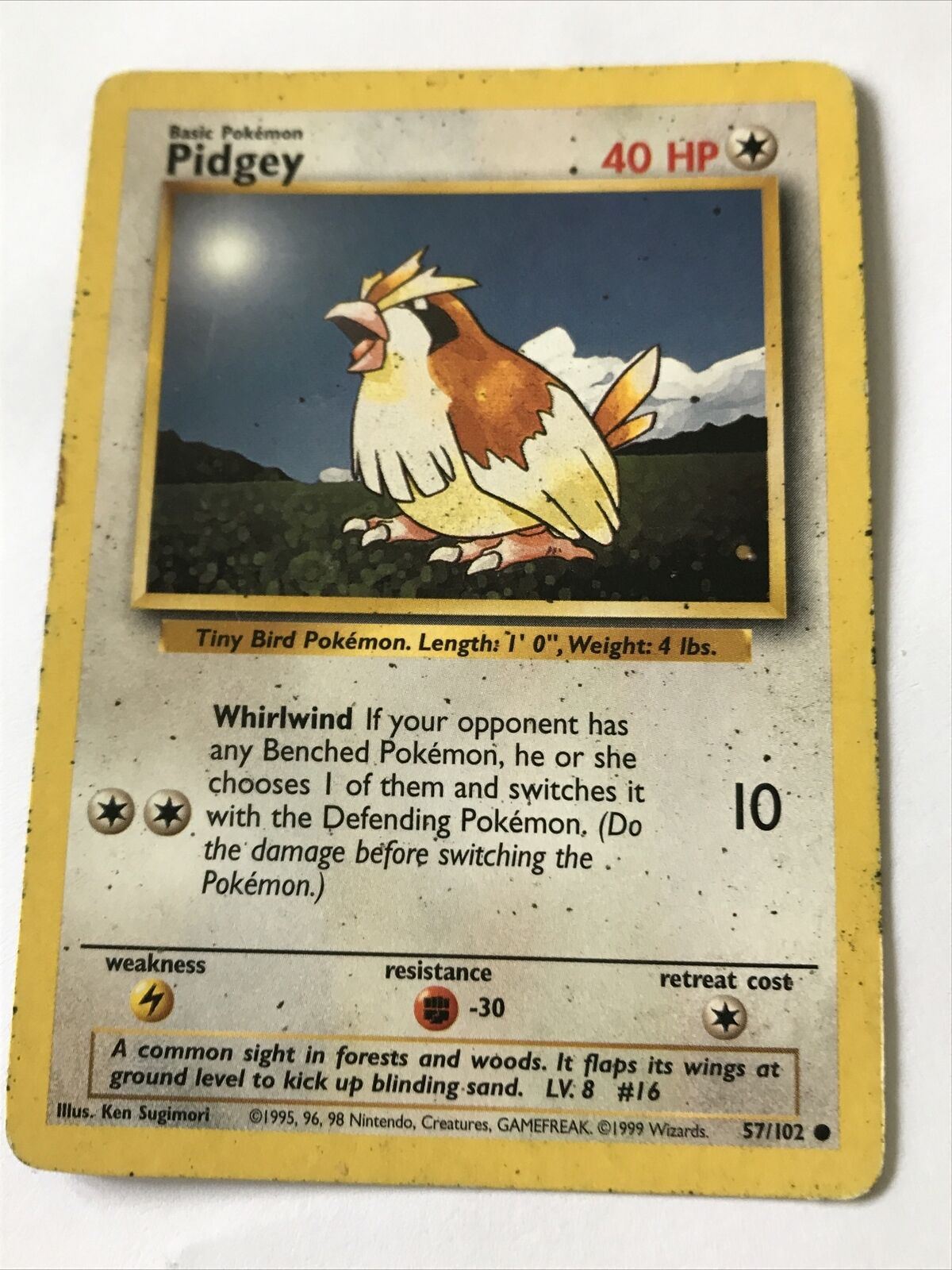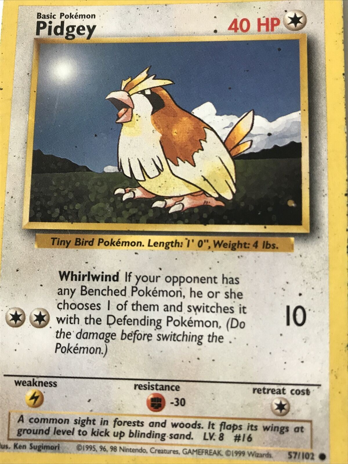 Vintage Pokemon Card PIDGEY 57/102 1999 Played Basic 40HP Wizards WOTC