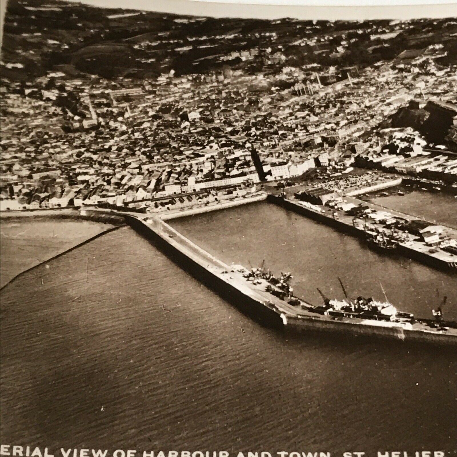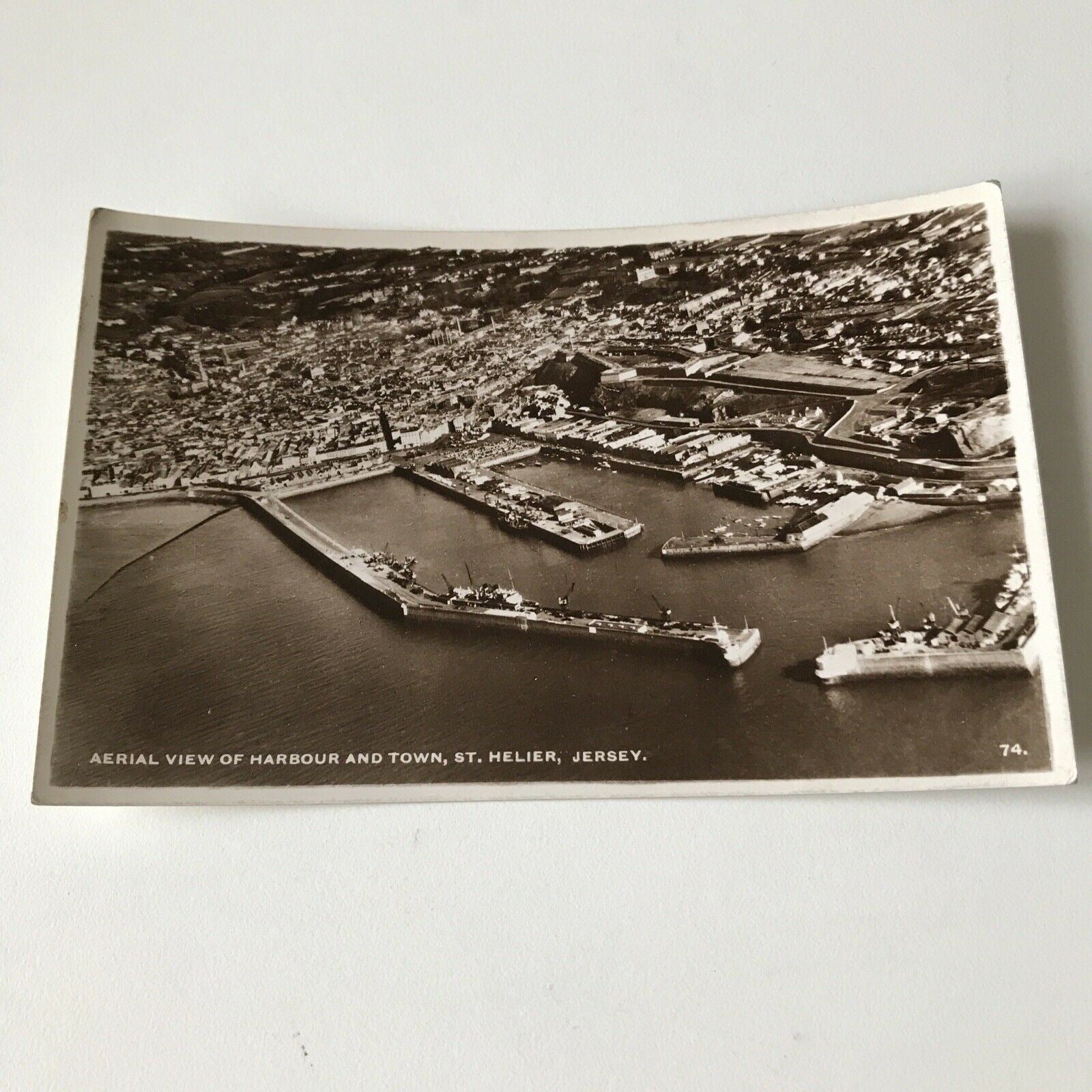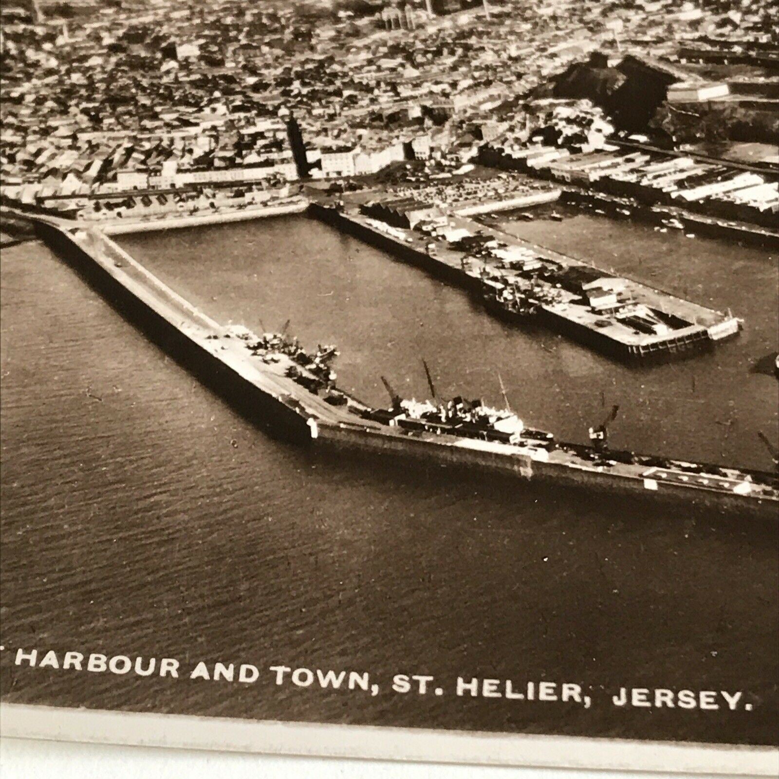 Vintage Postcard - Black White - Aerial View Of Of Harbour And Town - St Helier - Jersey - RP