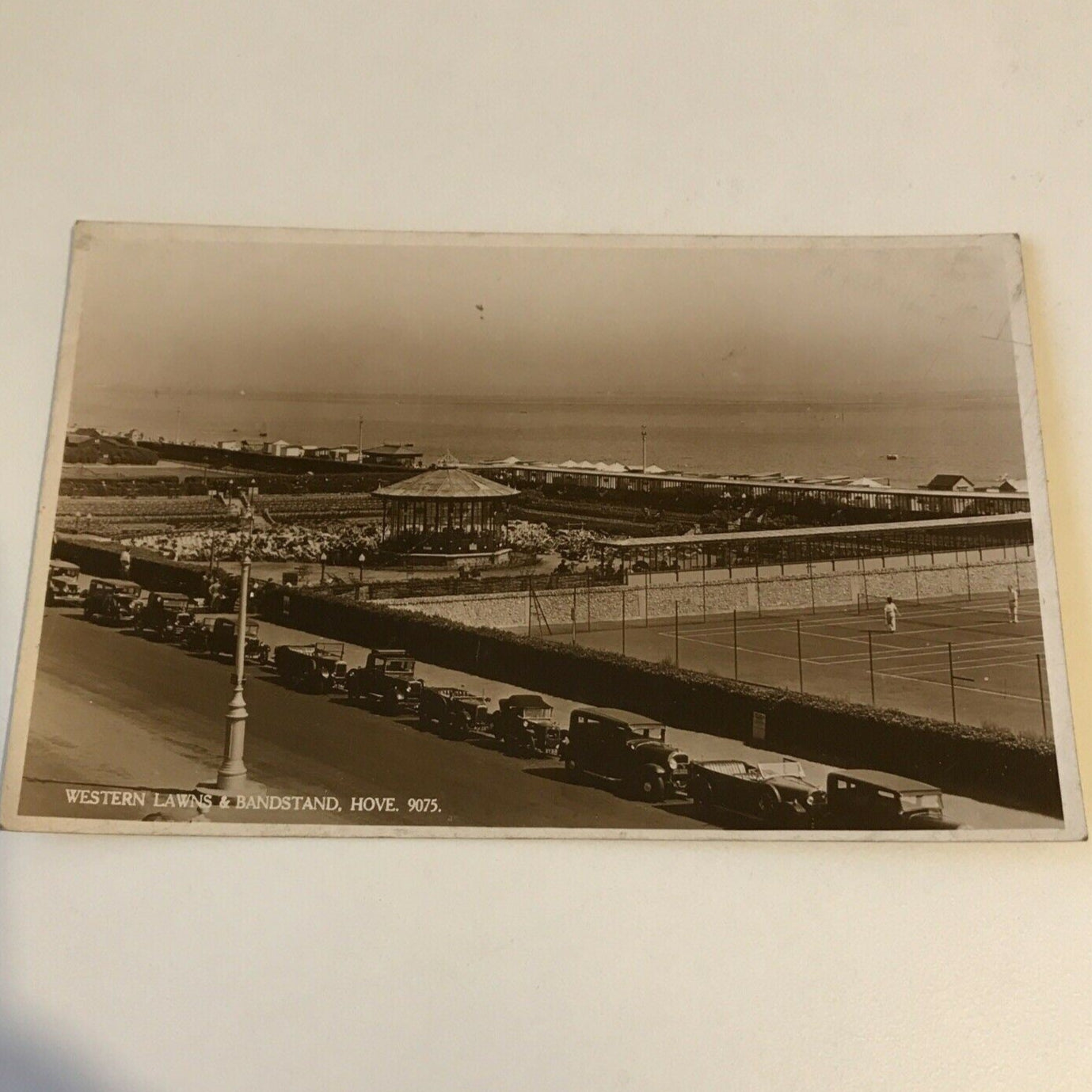 Vintage Postcard Black White Hove Western Lawns Bandstand Sea View Tennis RP. Condition is "Used".