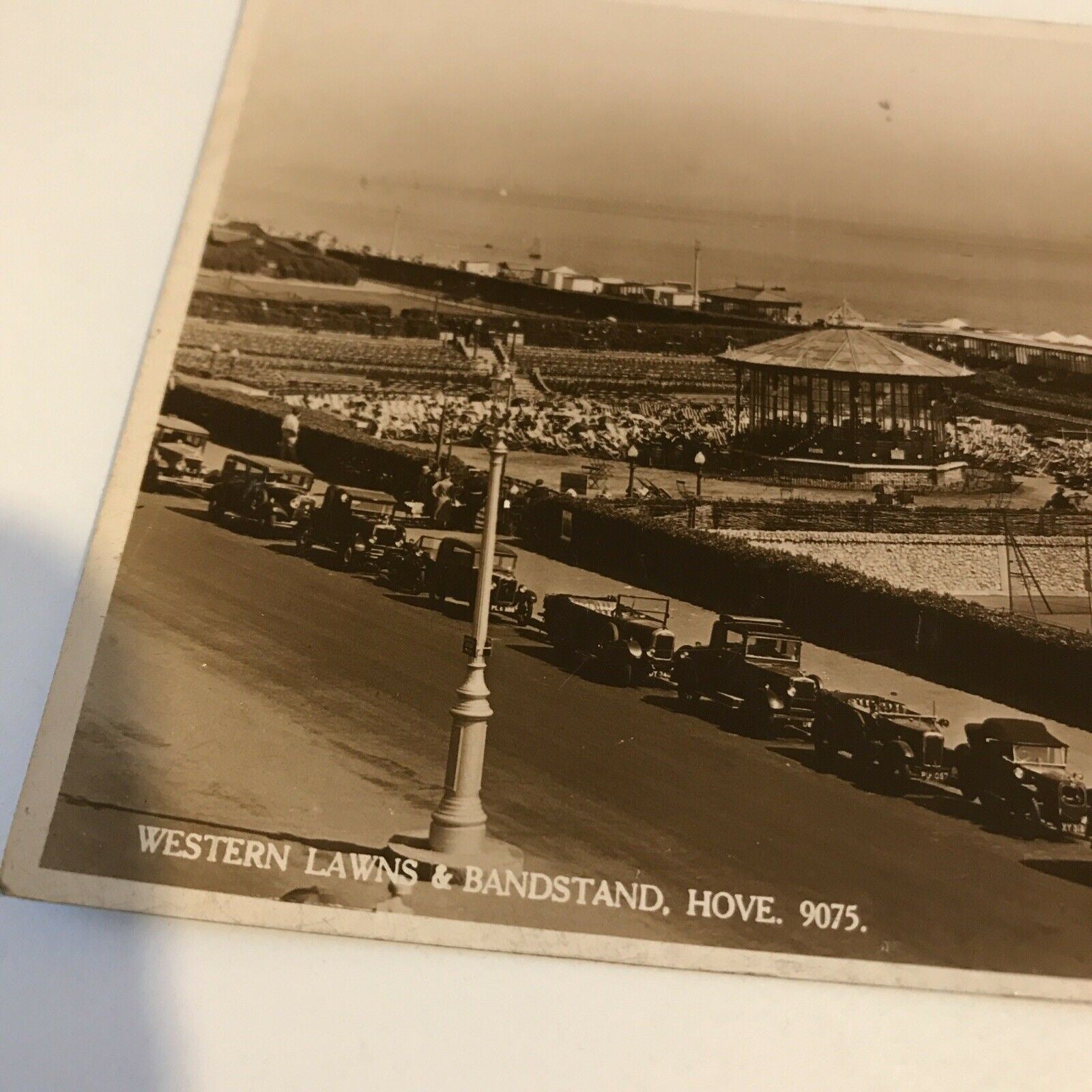 Vintage 1920s / 1930s Postcard - Black and White - Hove - Western Lawns - Bandstand / Sea View / Tennis RP