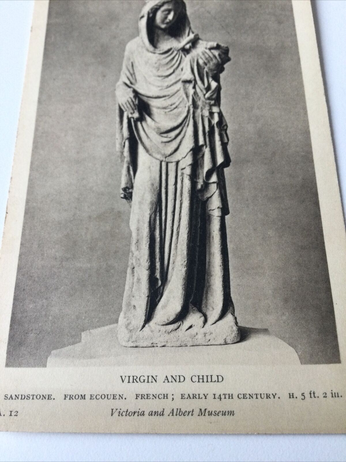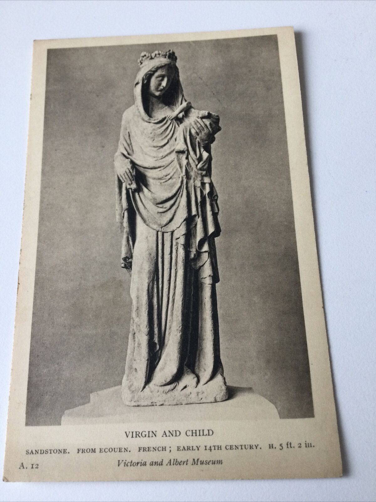 Vintage Postcard - V & A Museum - London - Virgin & Child Statue - C14th - French Sandstone