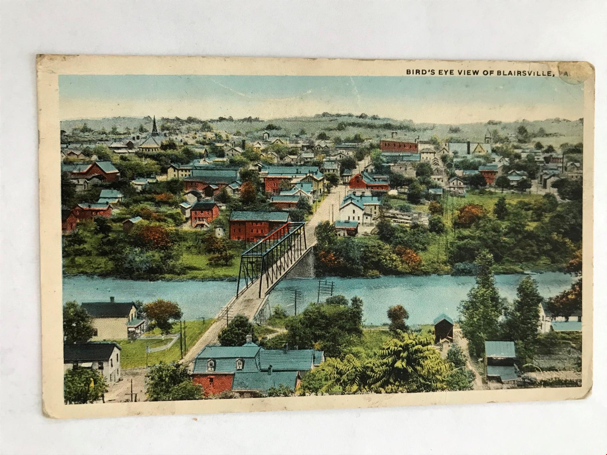 Vintage postcard - USA - BLAIRSVILLE GEORGIA - BIRD'S EYE VIEW - River and bridge, town