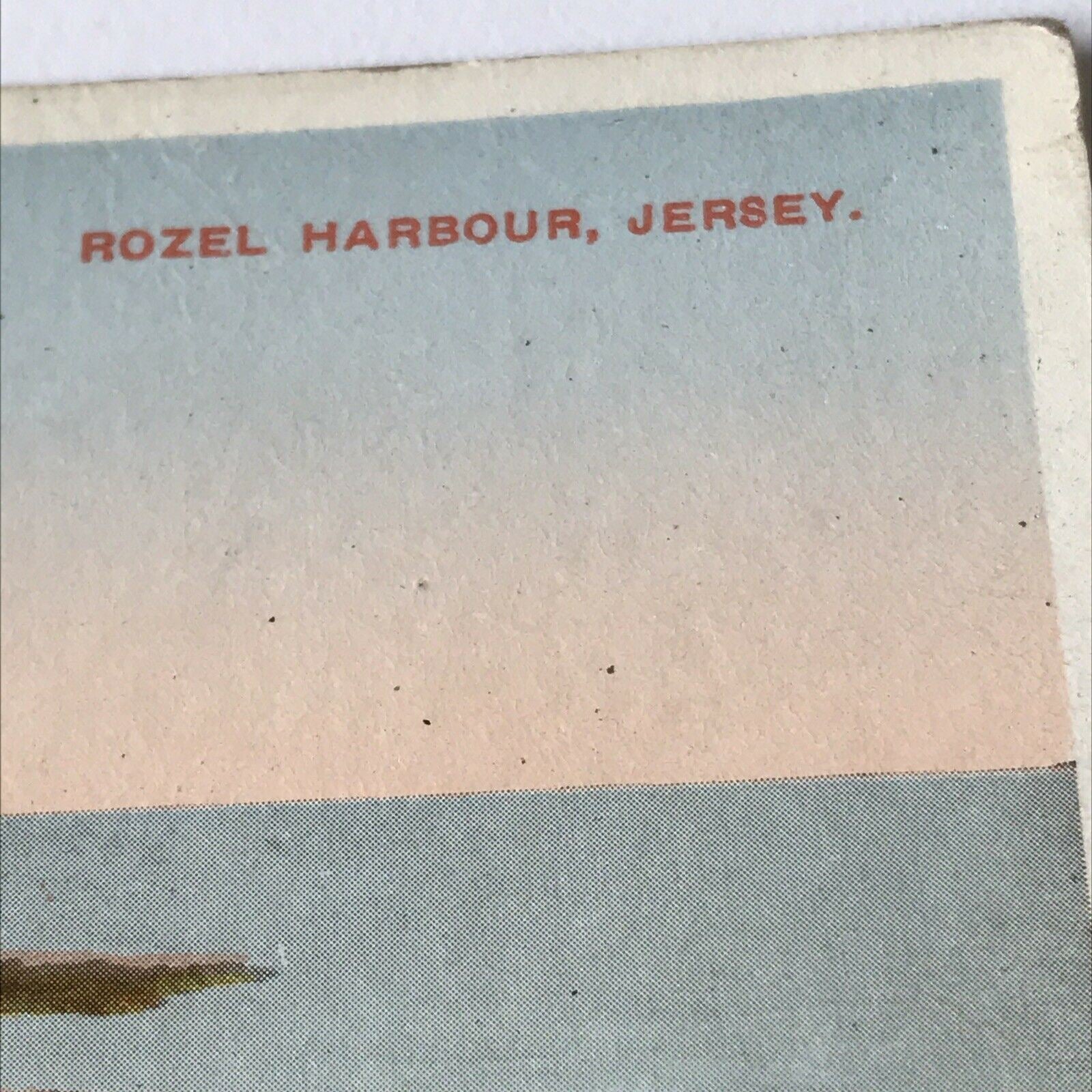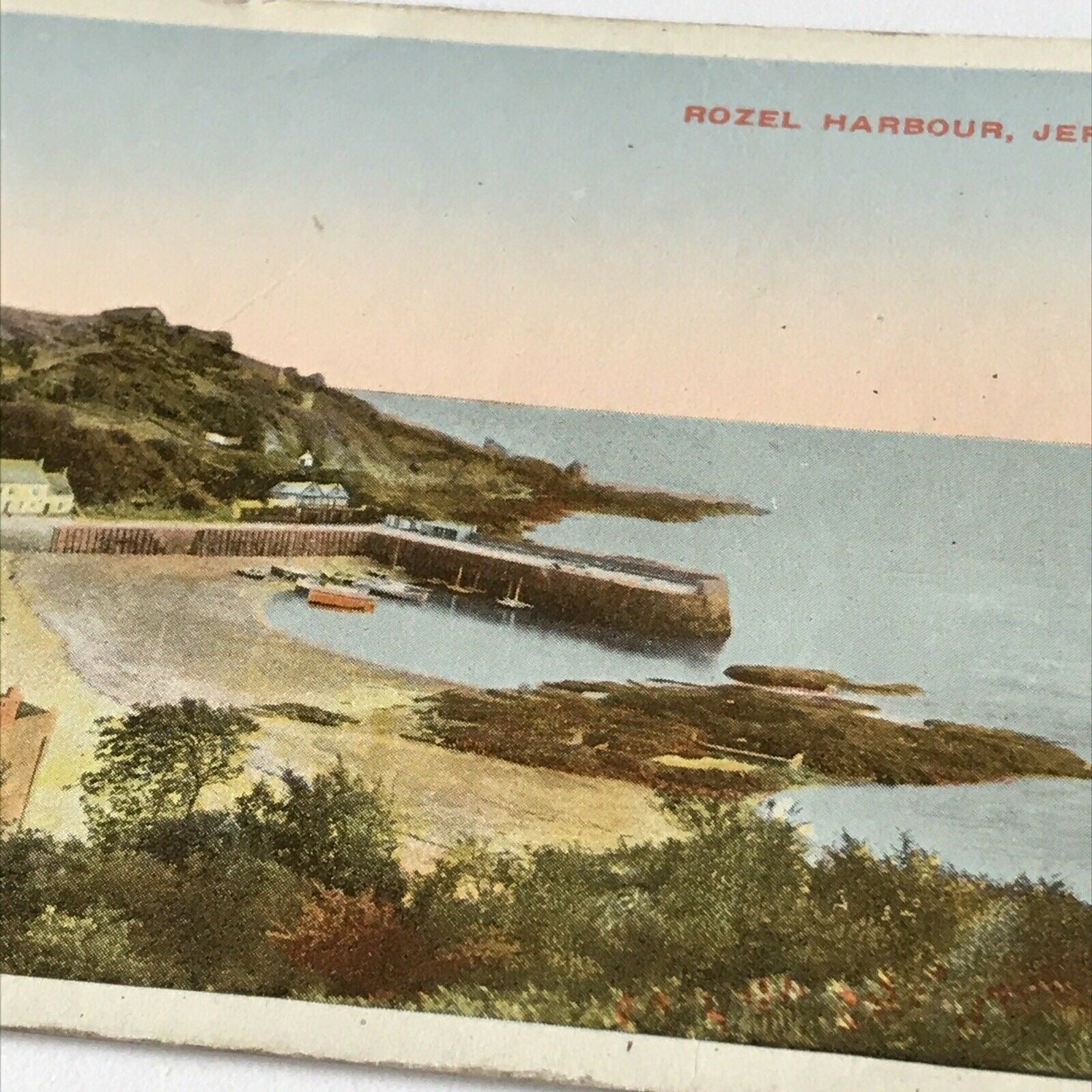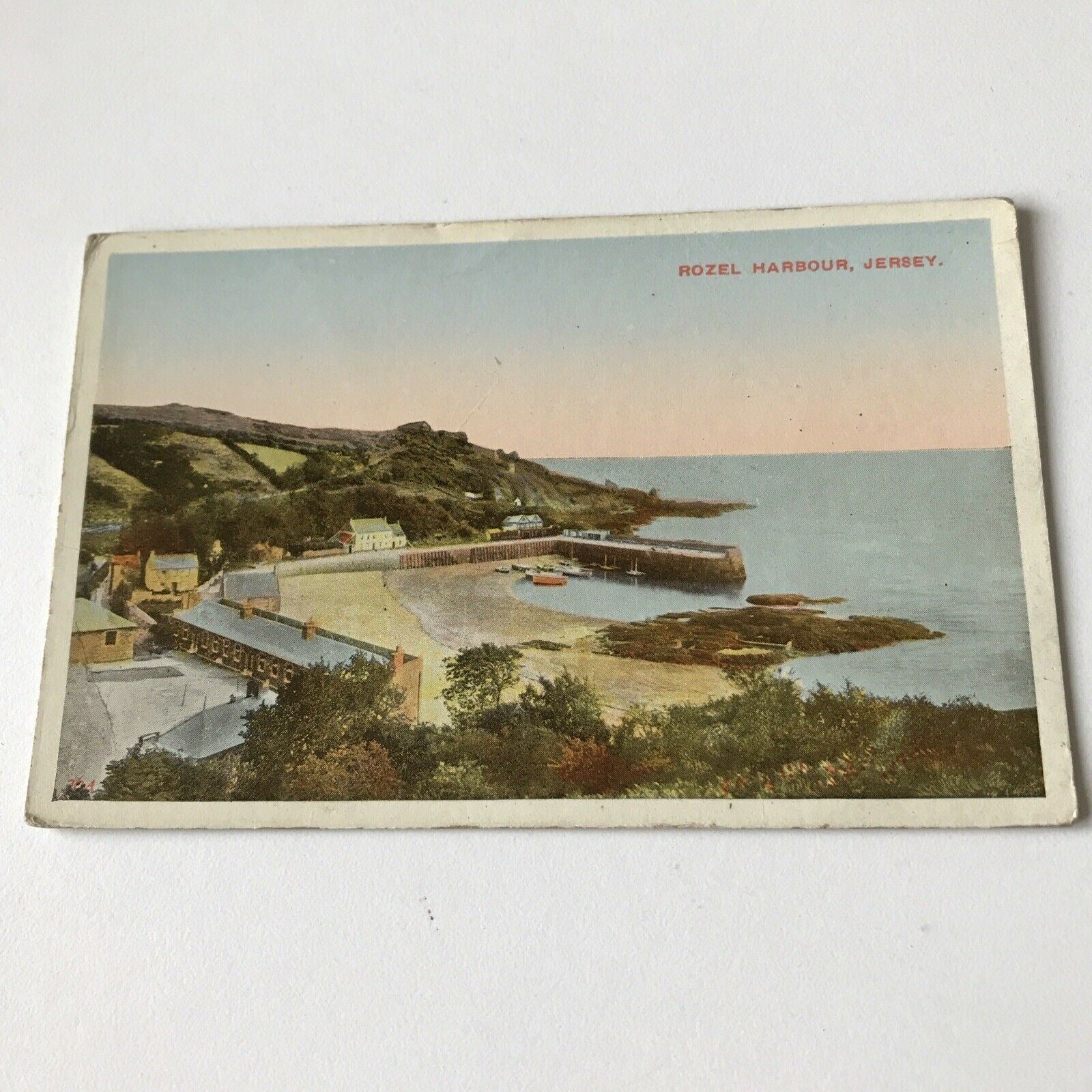 Vintage Postcard Coloured Rozel Harbour Jersey with Coastline Seascape Hills