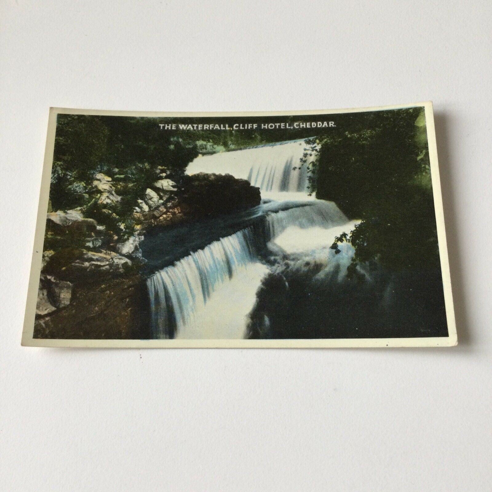 Vintage Postcard Tinted - The Waterfall - Cliff Hotel - Cheddar - Unposted - Scenic - Close-up of waterfall