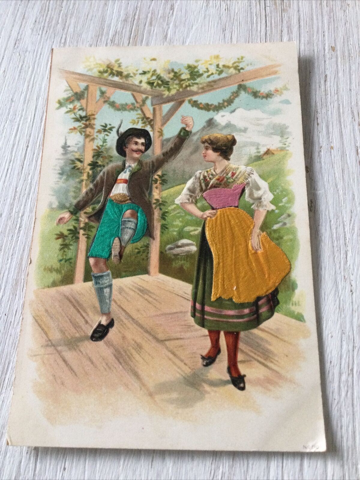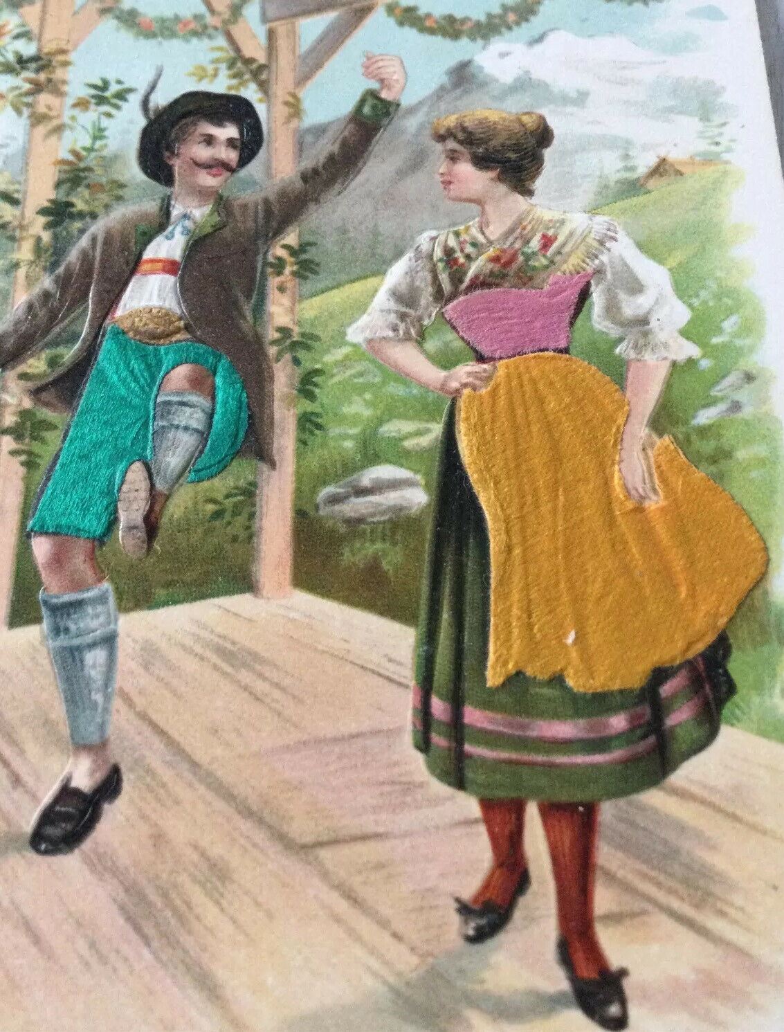 Vintage Postcard Embossed Coloured. Dancers In Bavarian? Austrian? Costume. Condition is "Used". Dispatched with Royal Mail in card-backed envelope for protection.