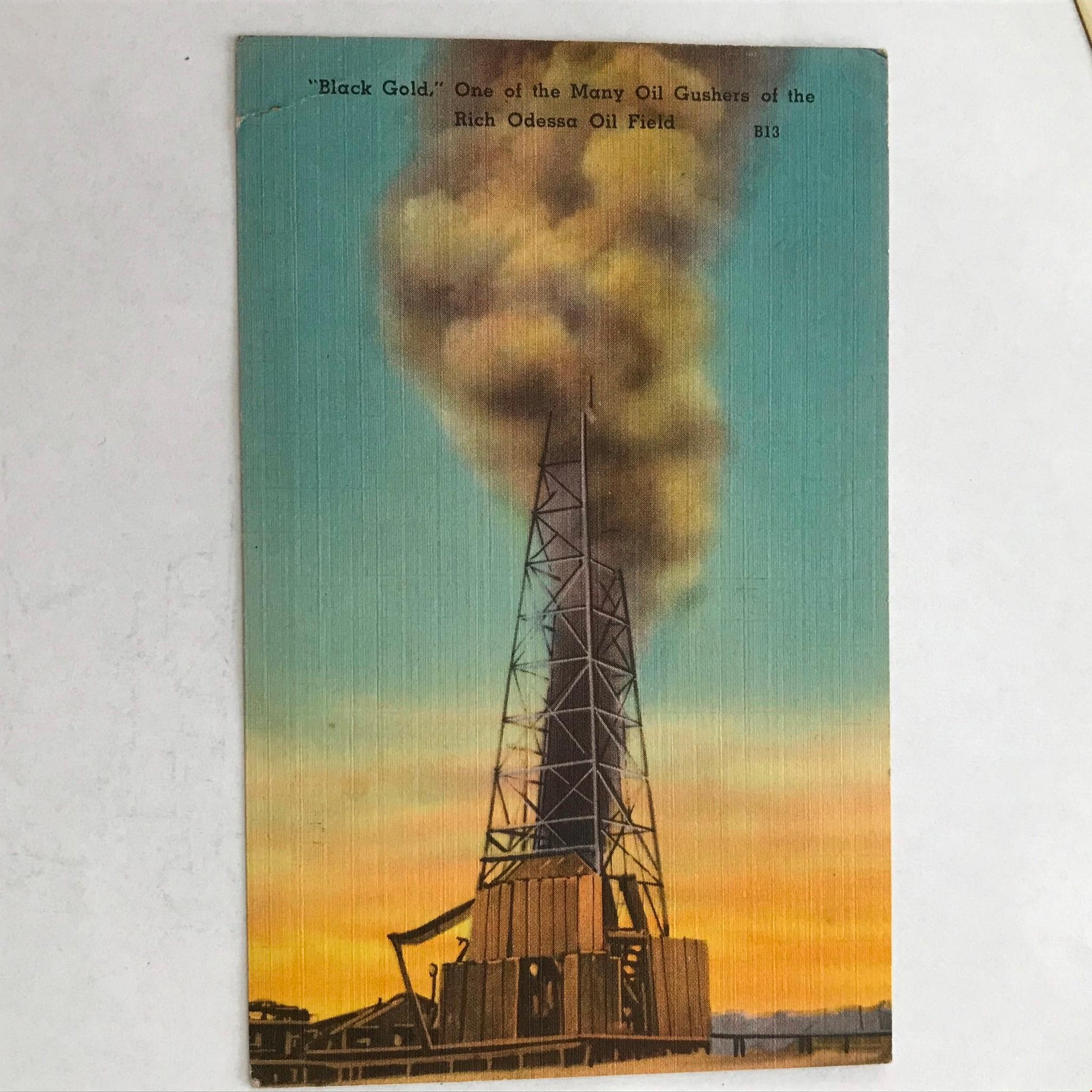 Vintage postcard Odessa Oil Gusher Oil Field Texas BLACK GOLD. Rare. Rich colour