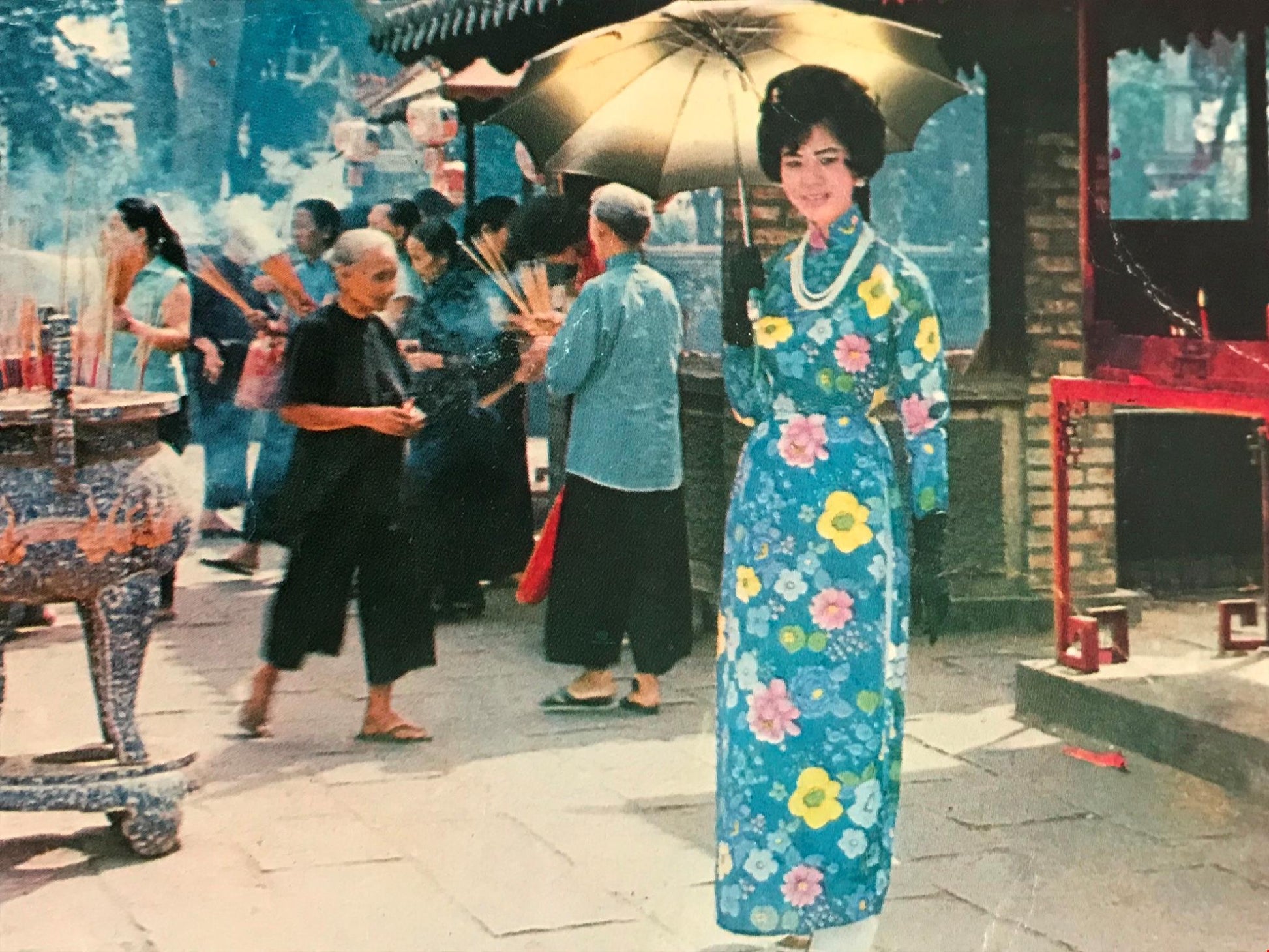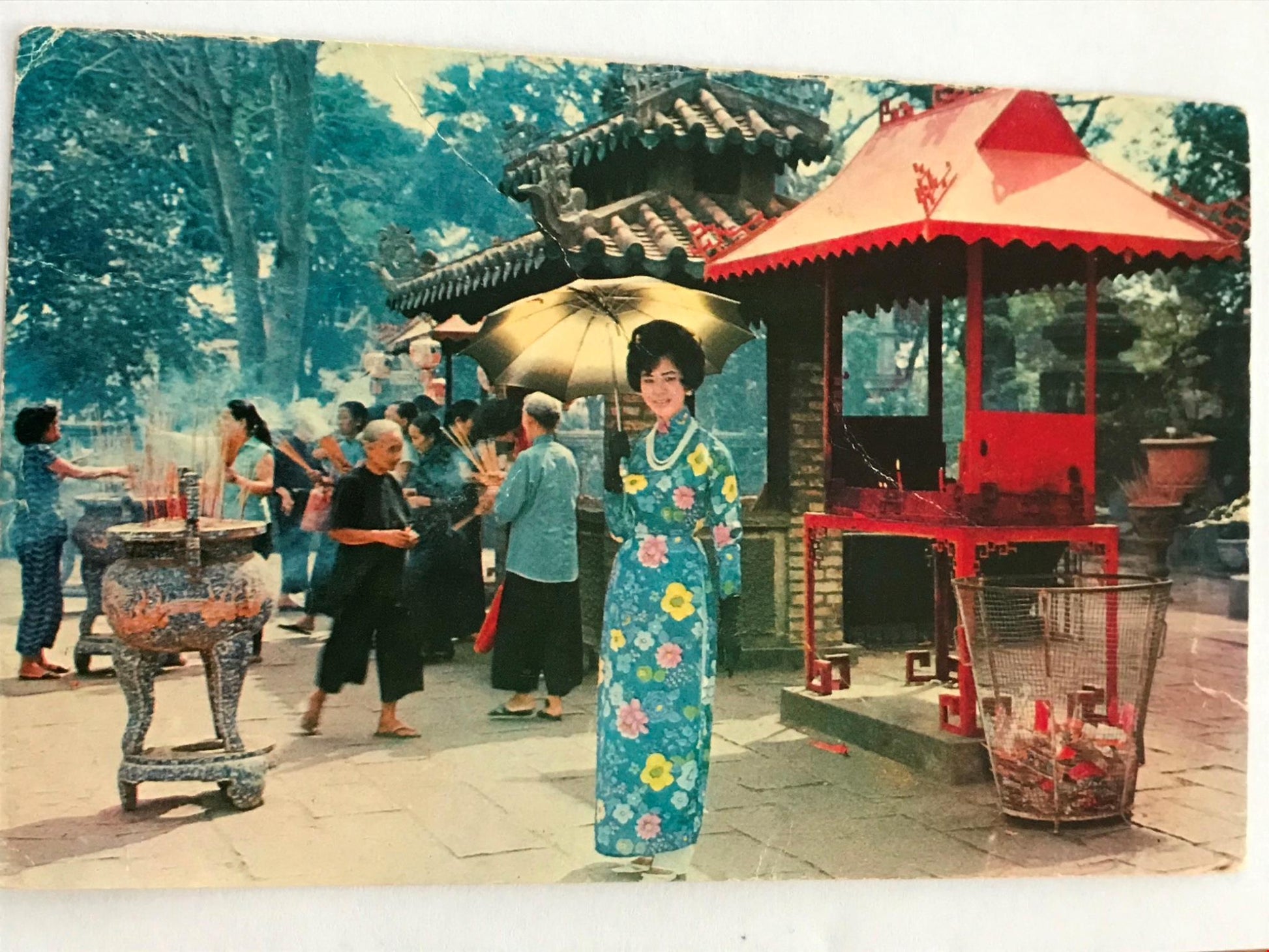 Vintage Postcard VIET NAM SAIGON LE VAN DUYET TEMPLE Street scene busy