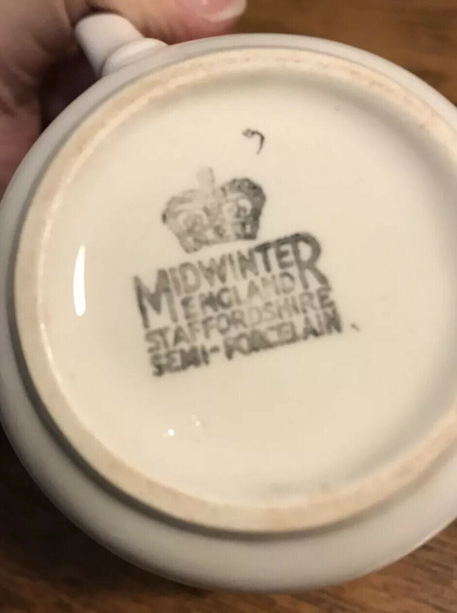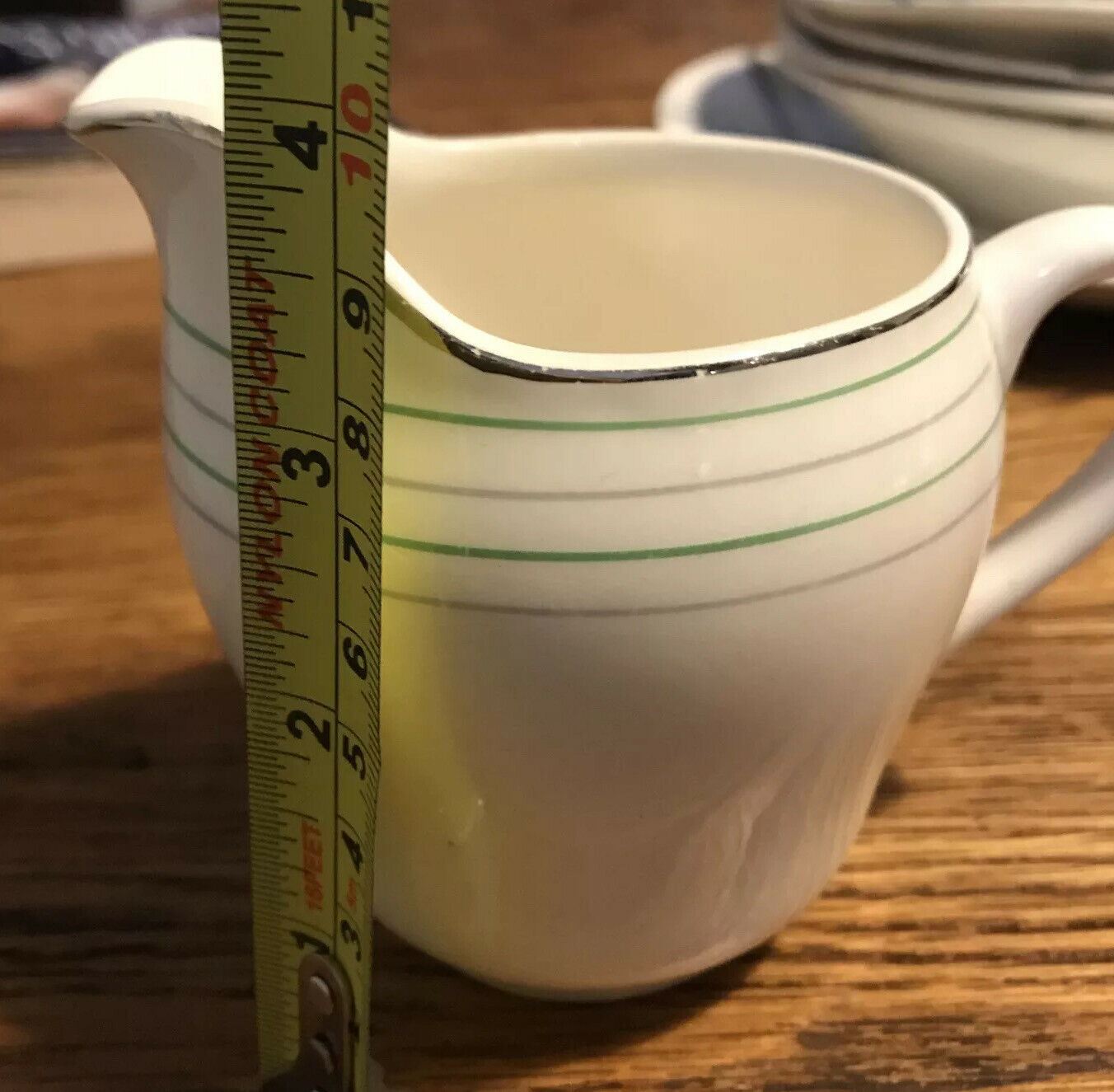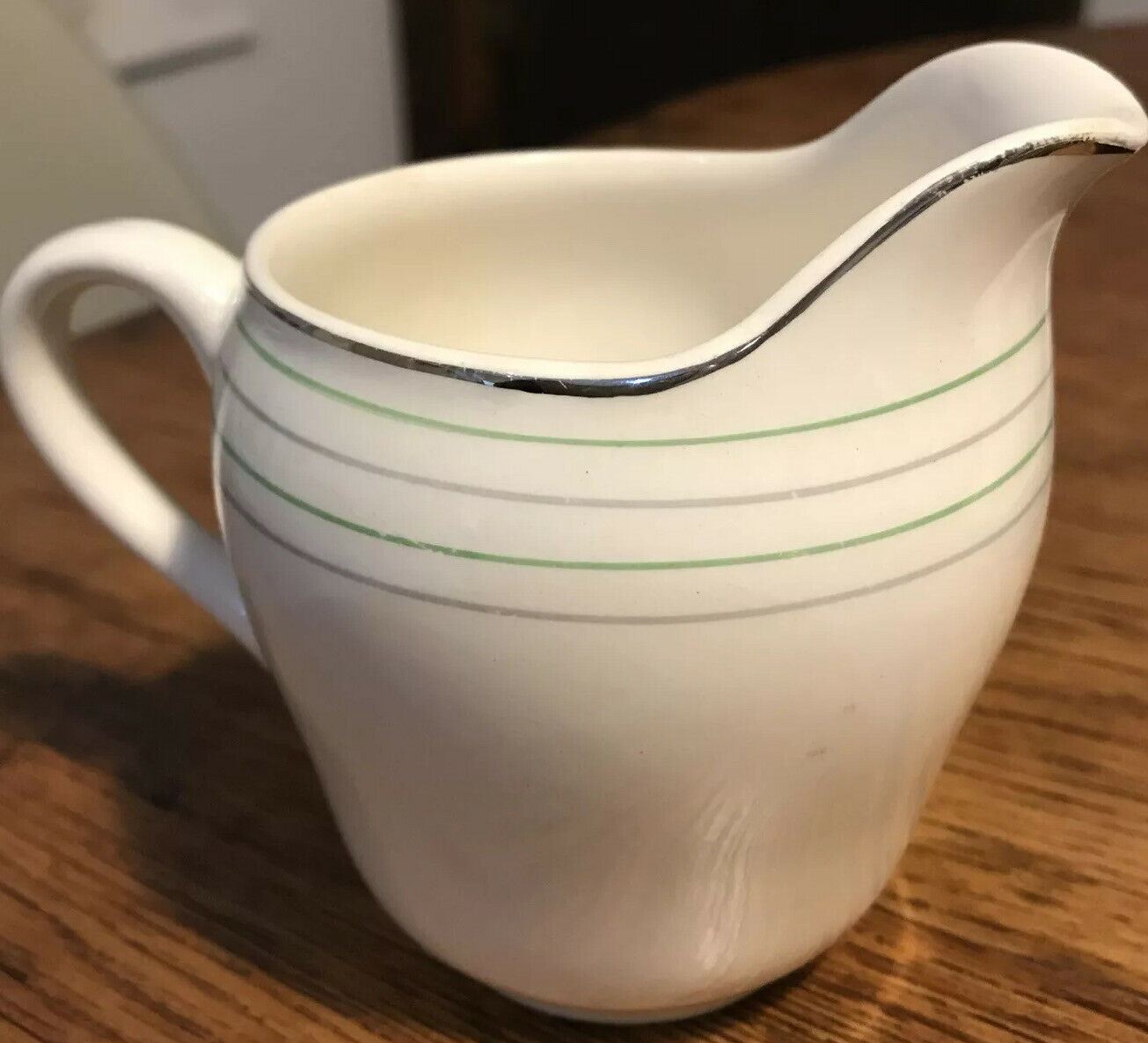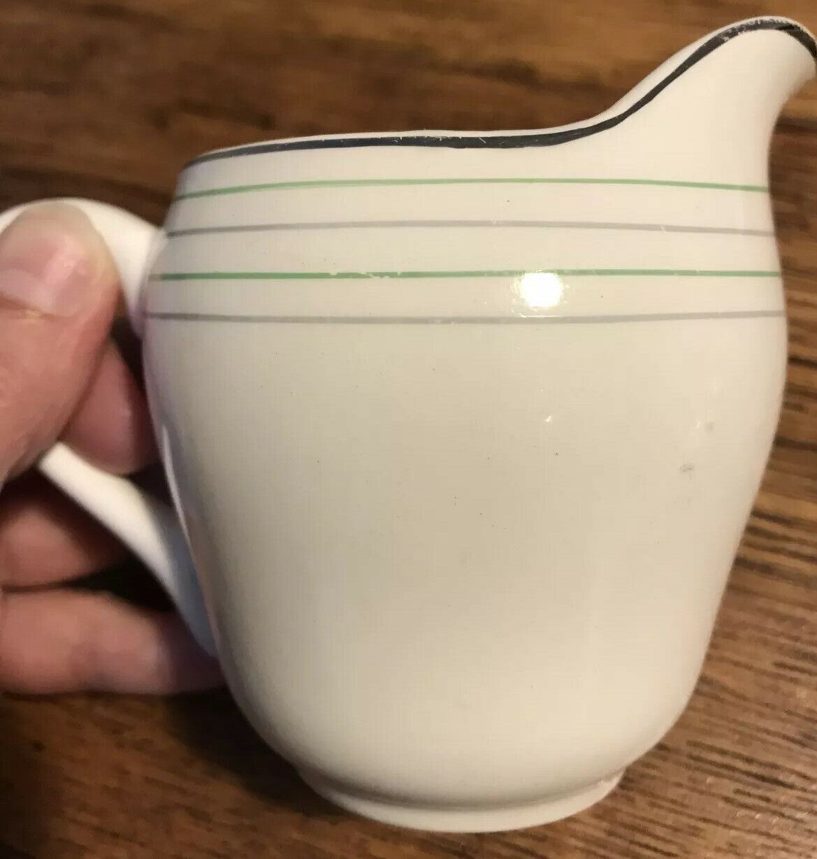 Vintage Retro Midwinter Small Jug. Cream With Green And Gold Stripes. Creamer 1940s 1950s Post War