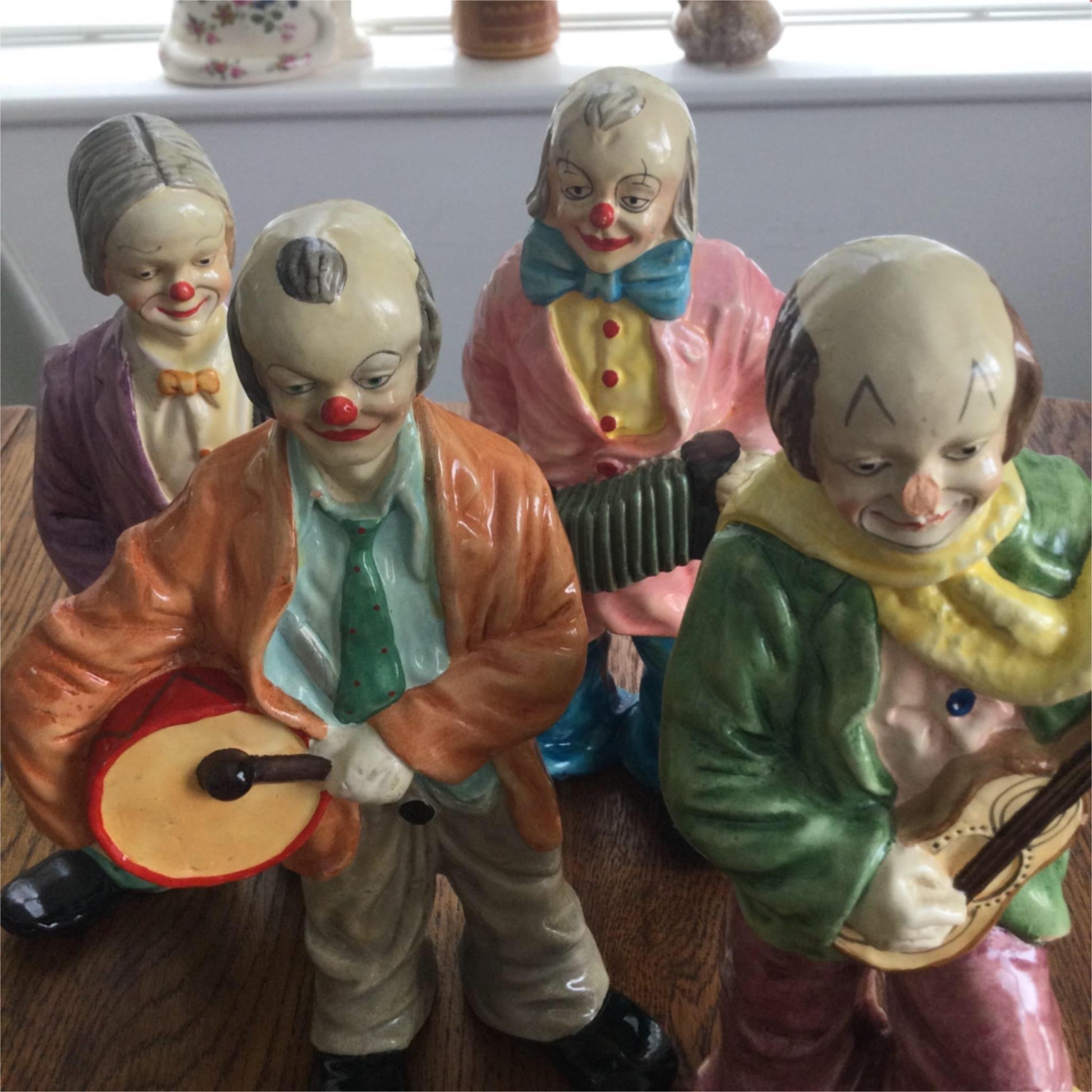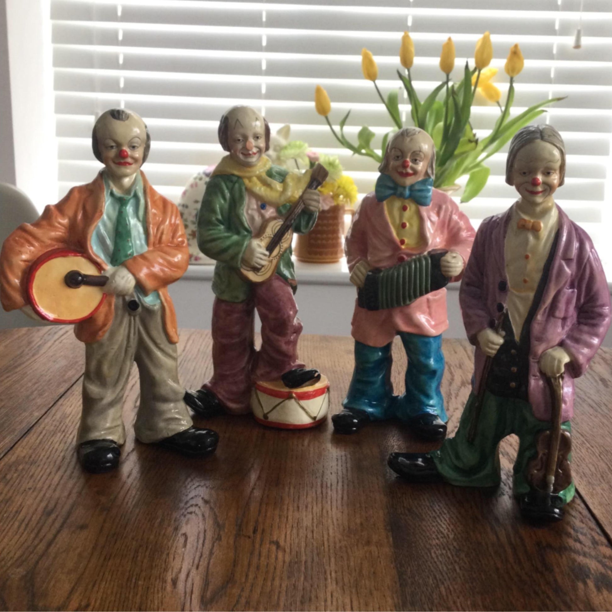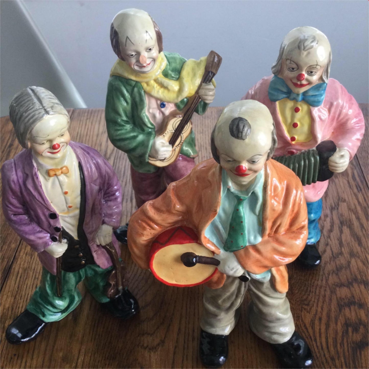 Wonderful set of 4 musician clowns. Bright and cheery.