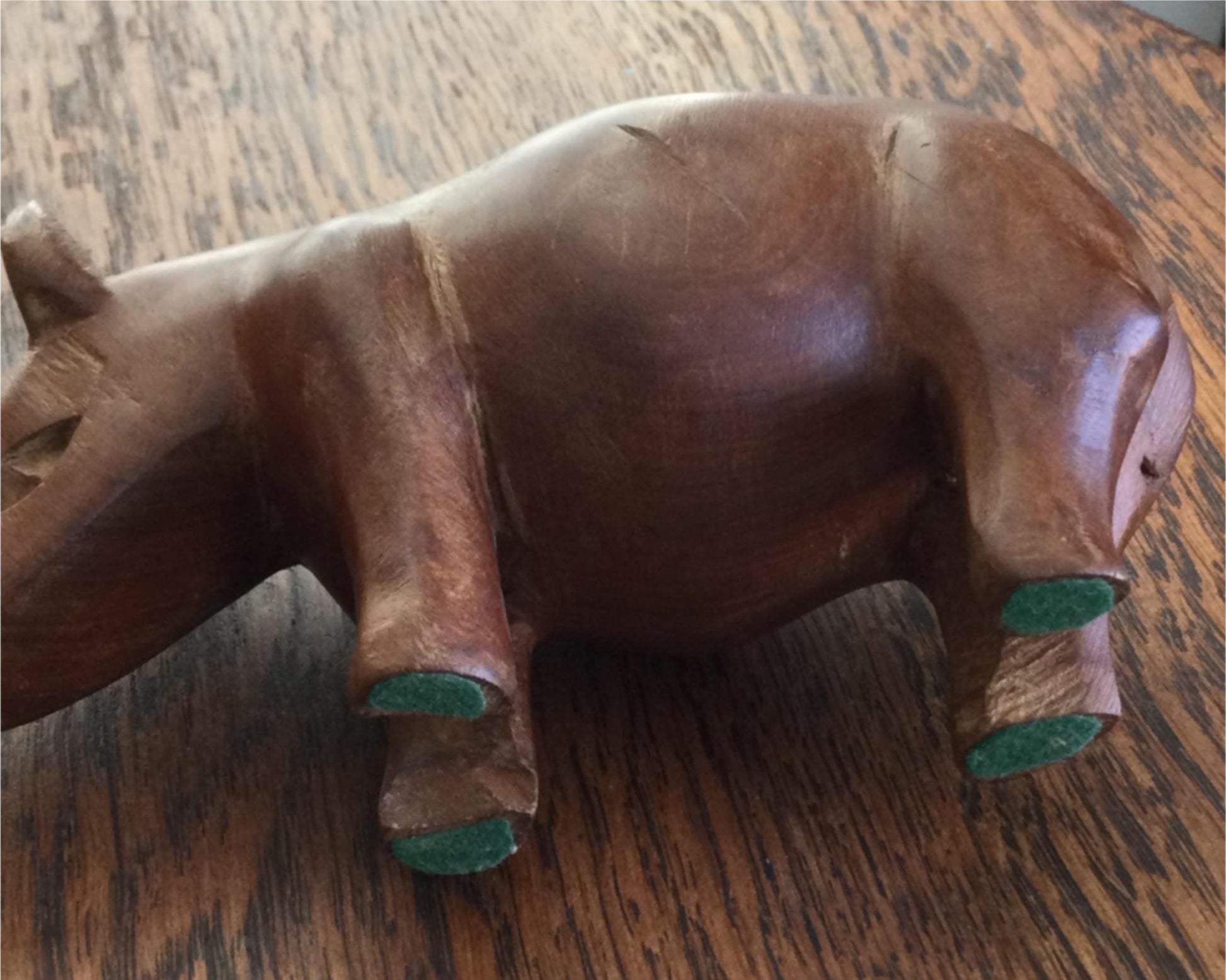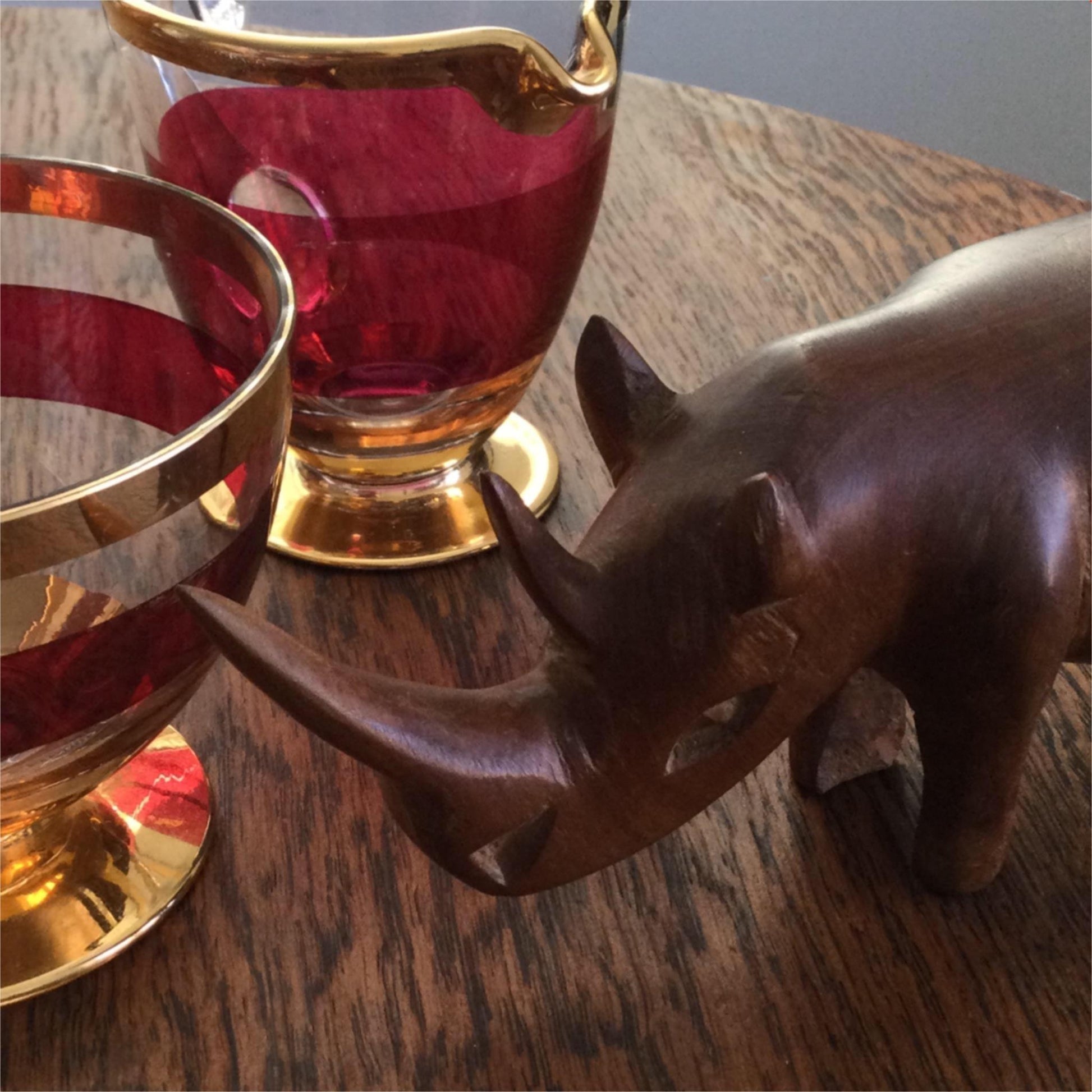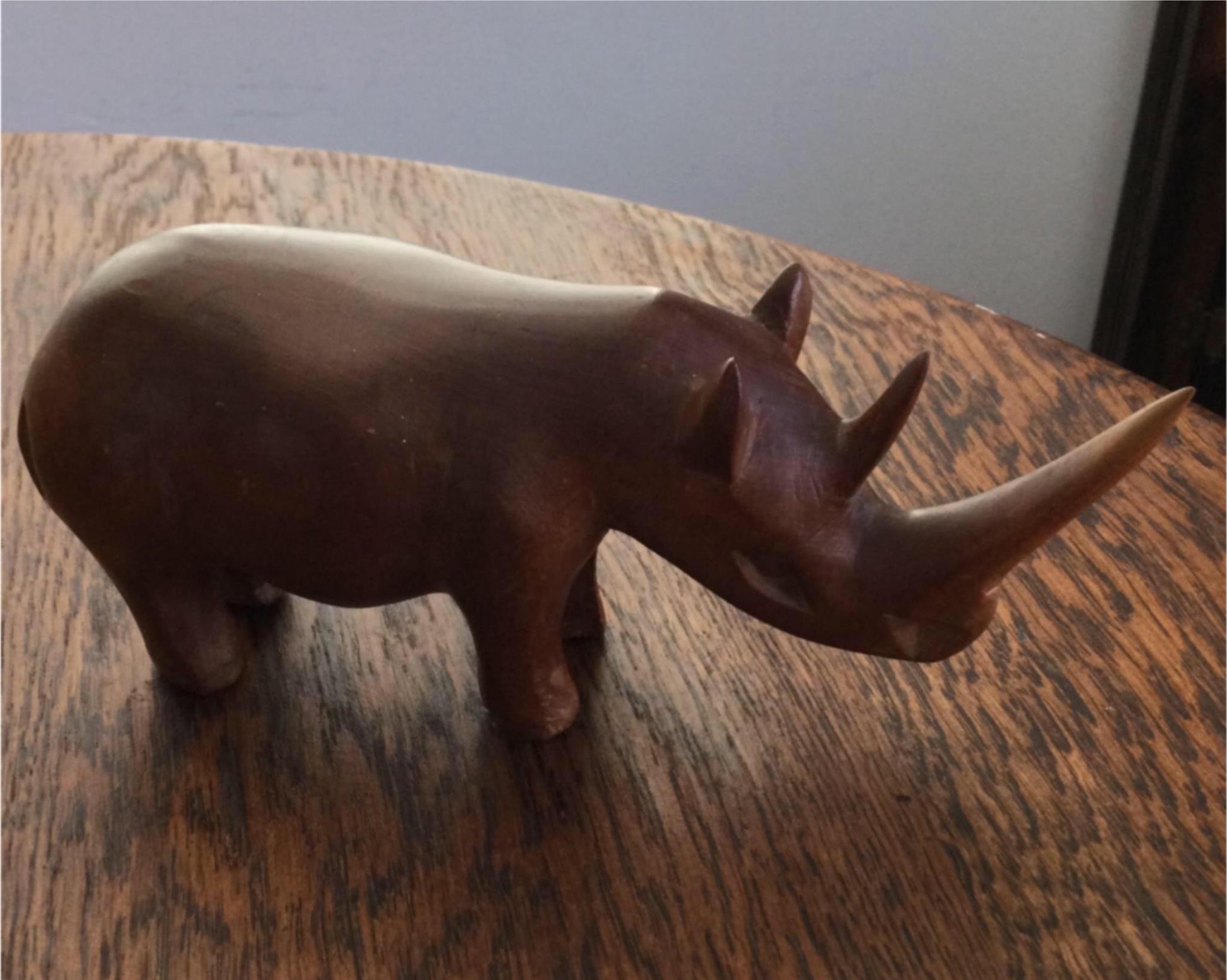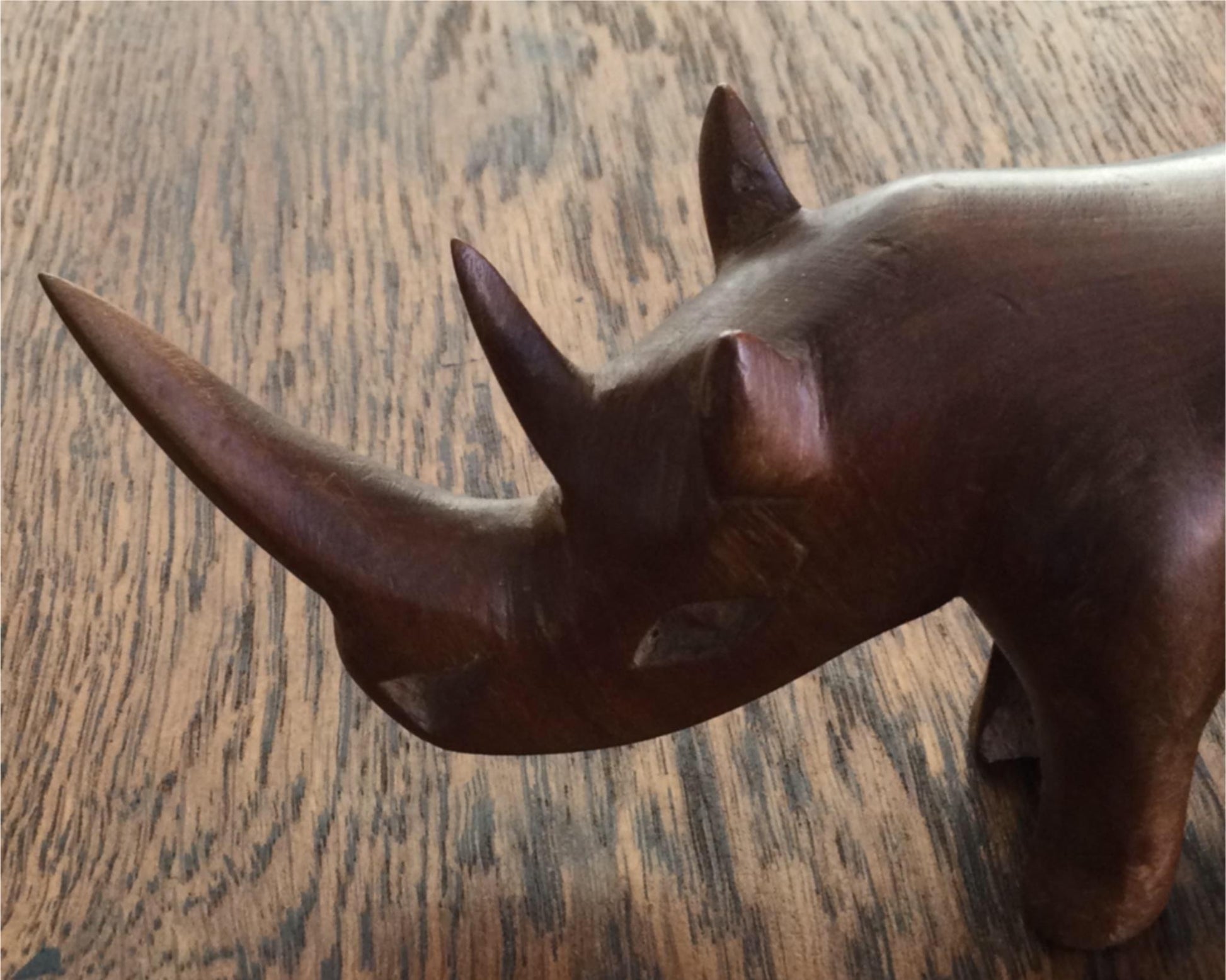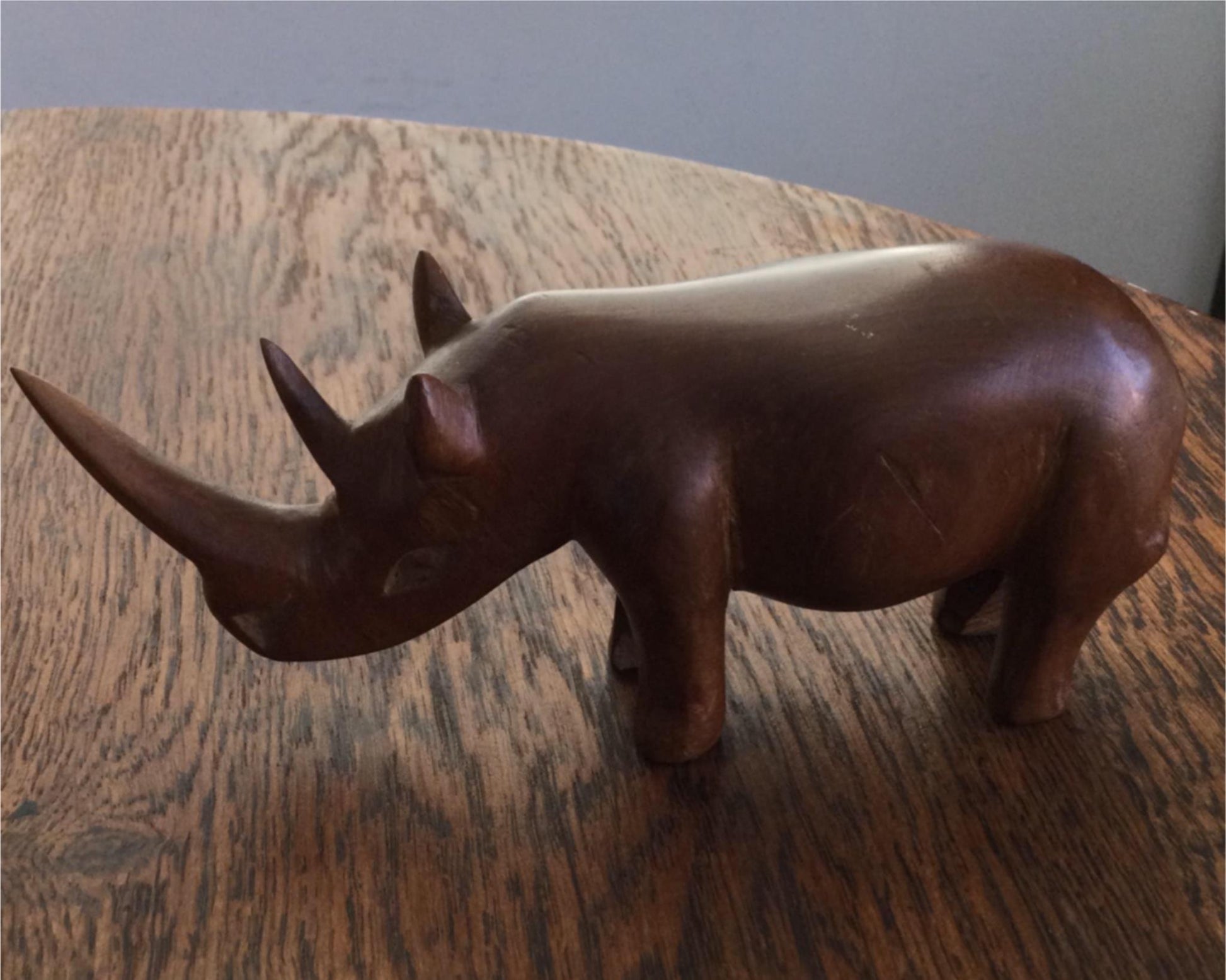 Vintage Retro Teak Wooden Hand Carved Rhino Figurine ornament 18cm long 60s 50s.