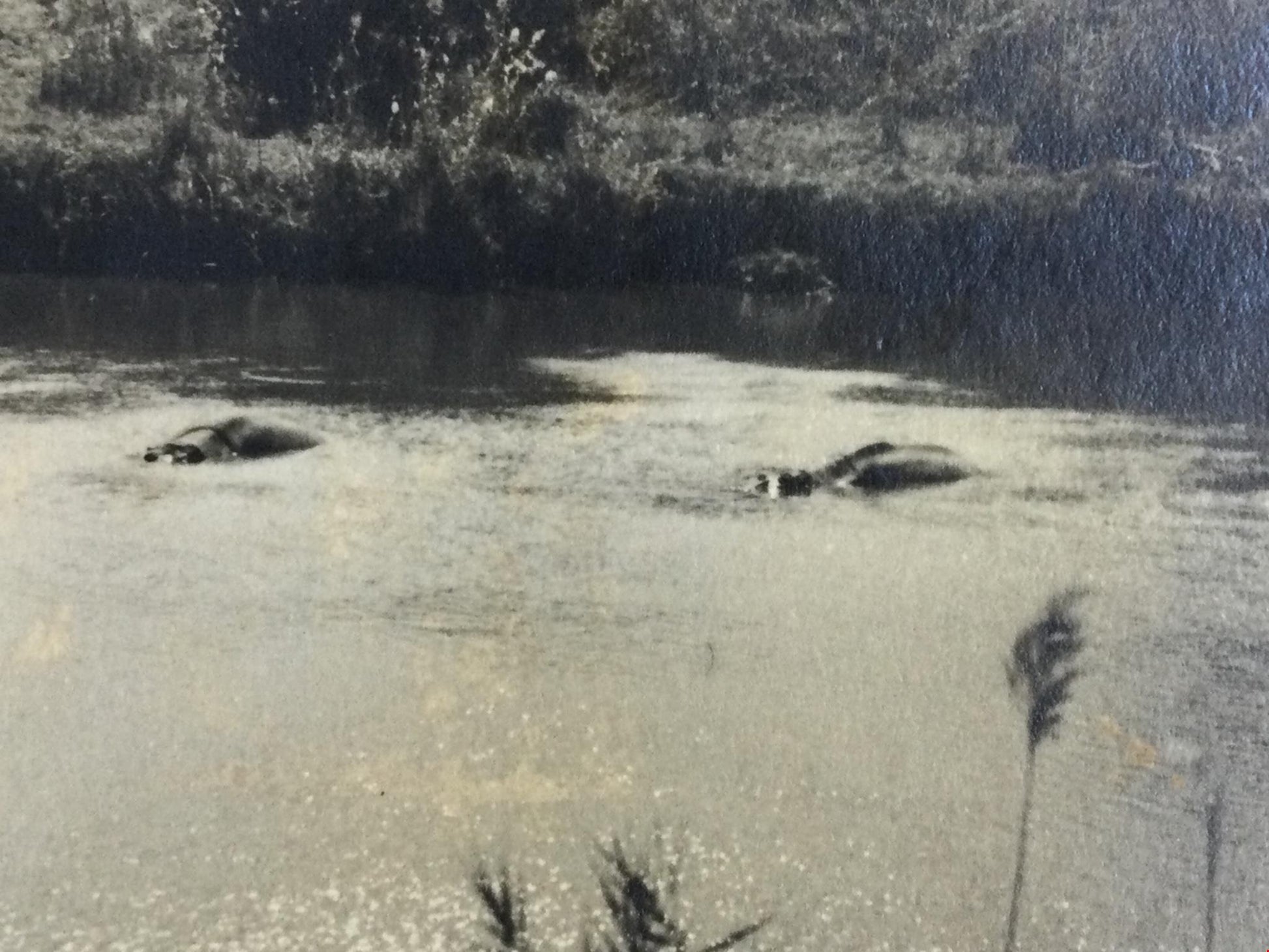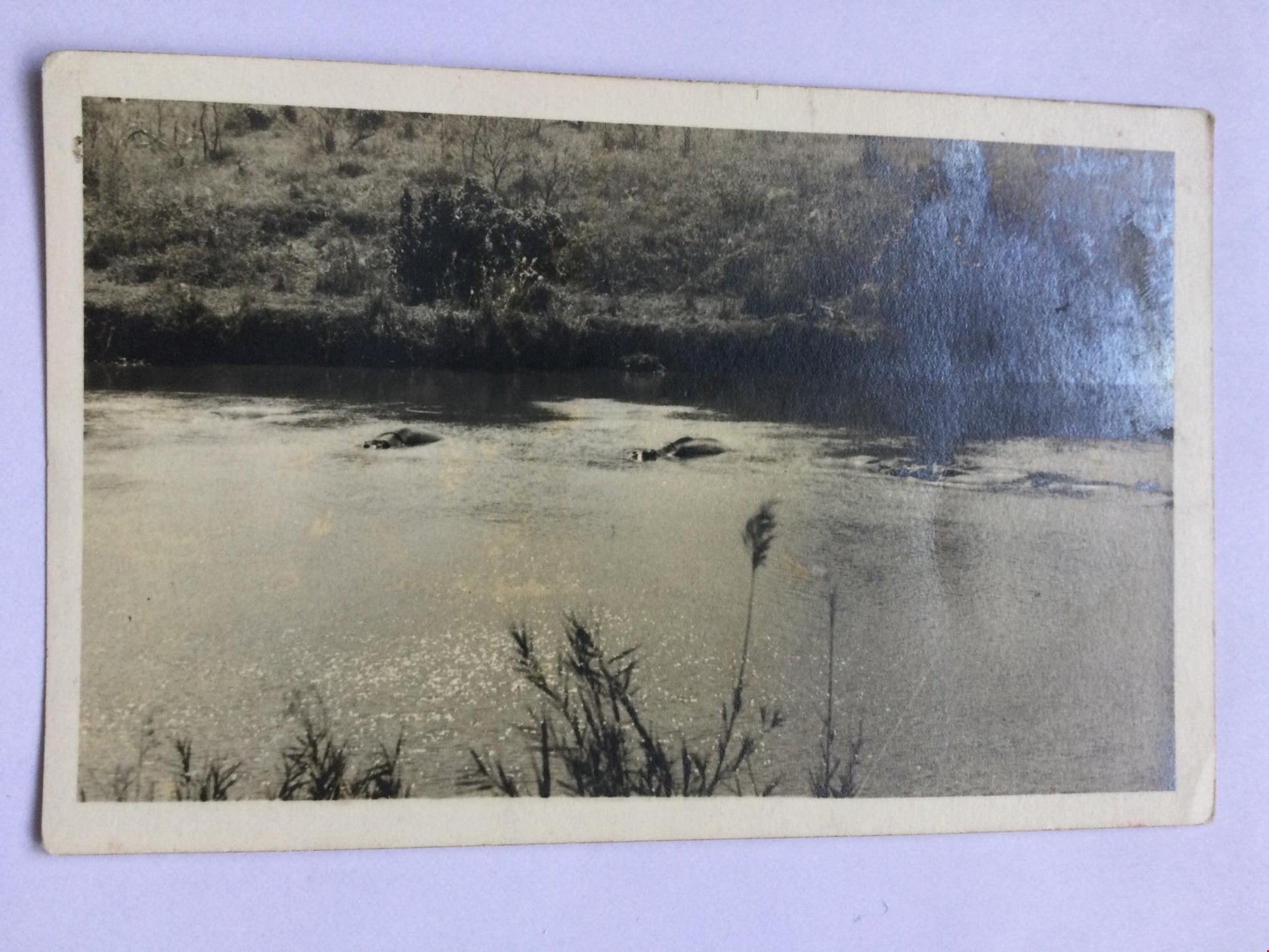 Vintage RP Postcard. River with hippos? crocodiles? Black & White. Unposted