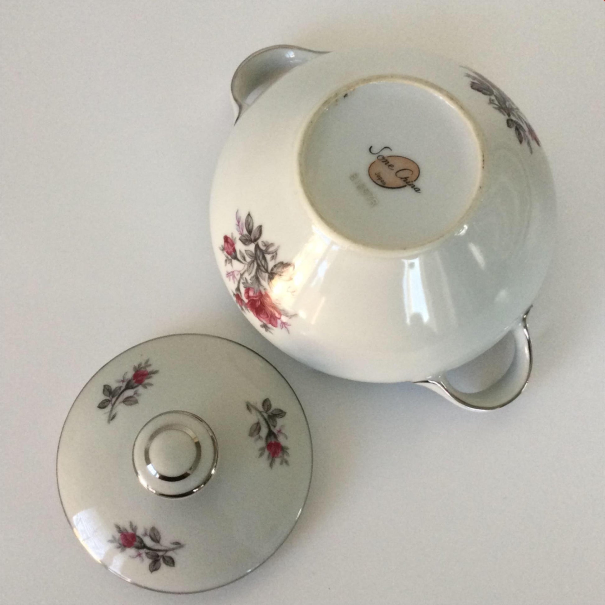 Vintage SONE china Lidded sugar bowl Rose design Made in Japan 81897R mid century