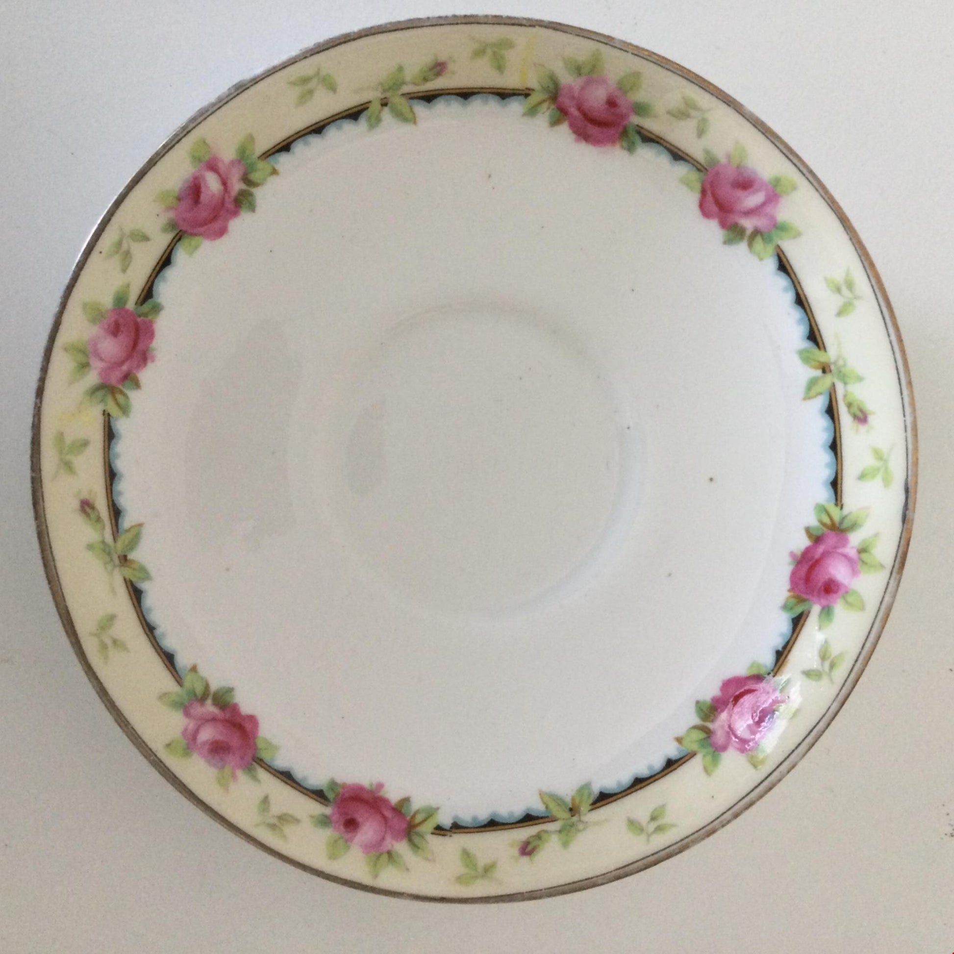 A really sweet little saucer. I use these as soap dishes. They give a lovely vintage touch to the bathroom.
