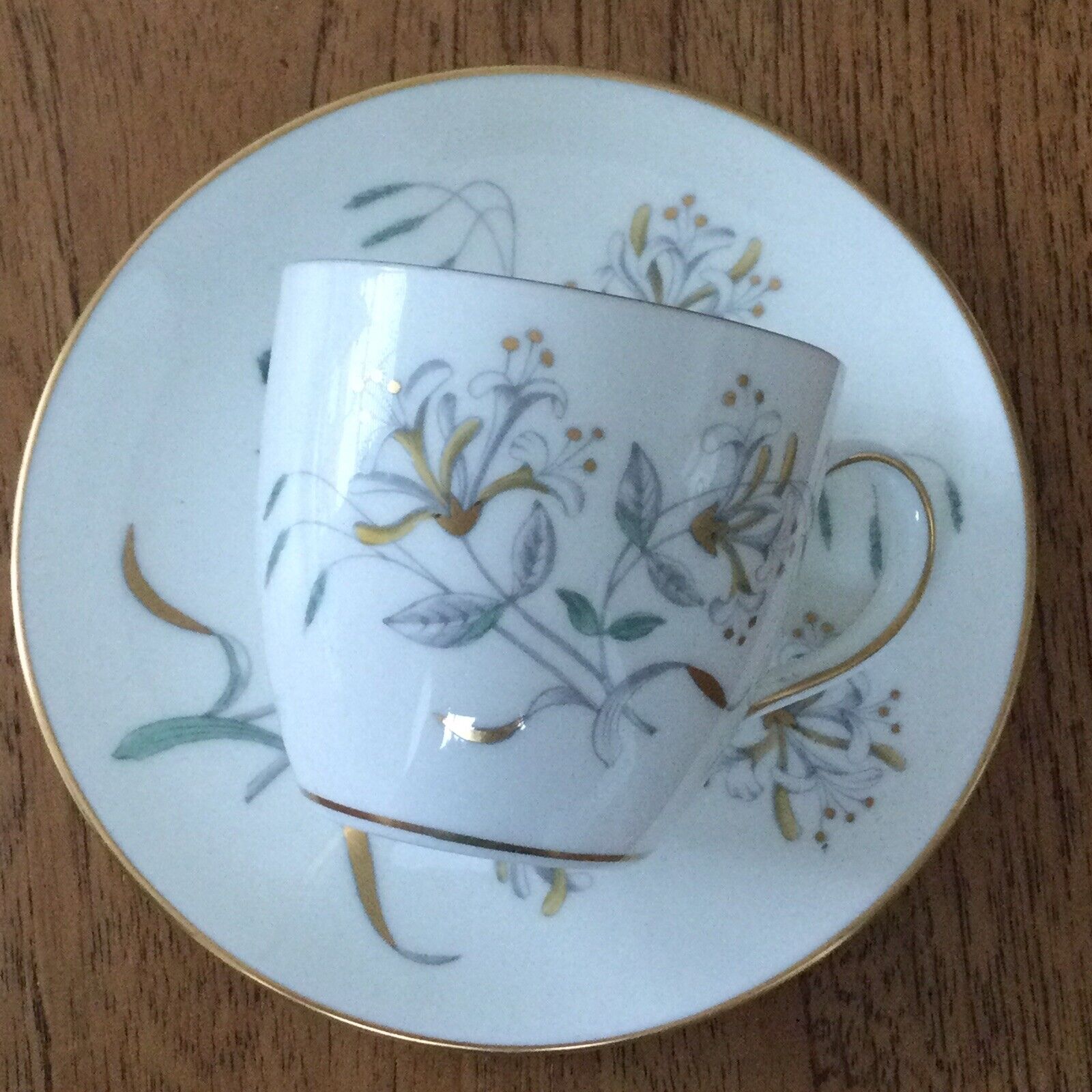 Vintage Wedgwood Honeysuckle Grey Espresso Demitasse cup and saucer botanical.