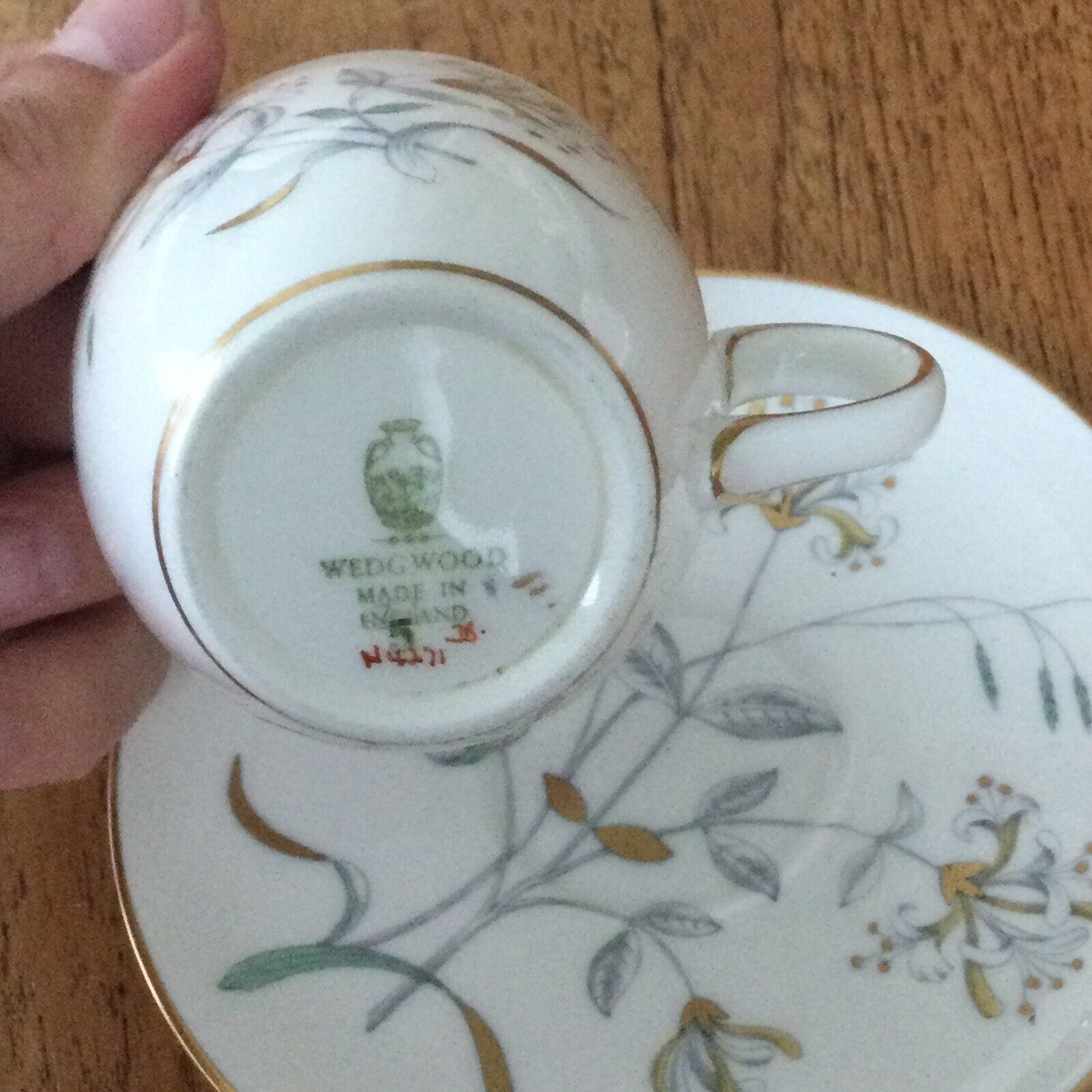 Vintage Wedgwood Honeysuckle Grey Espresso Demitasse cup and saucer botanical