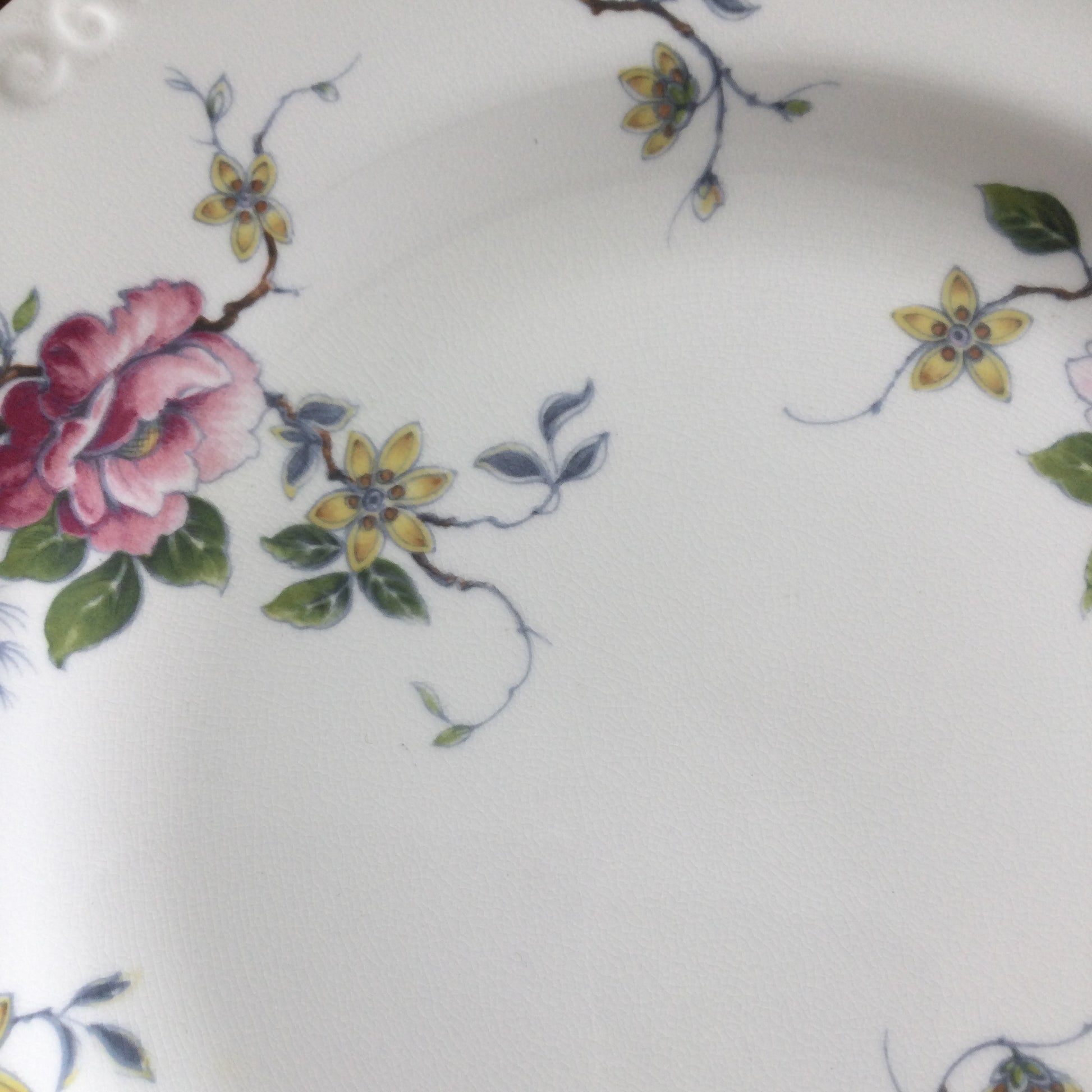 It has a wonderful raised patterned edge, and pretty brightly coloured floral design. Very cottagey.