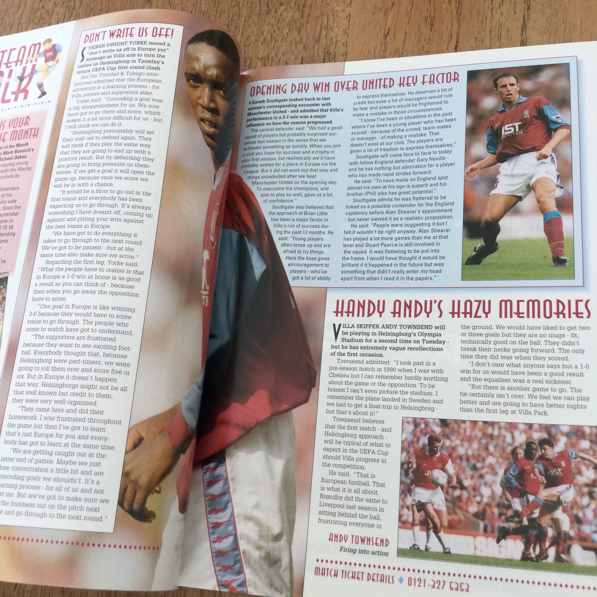 Villa Team: Mark Bosnich, Gary Charles, Steve Saunton, Gareth Southgate, Paul McGrath, Andy Townsend, Ian Taylor, Mark Draper, Savo Milosevic, Dwight Yorke, Tommy Johnson, Julian Joachim,