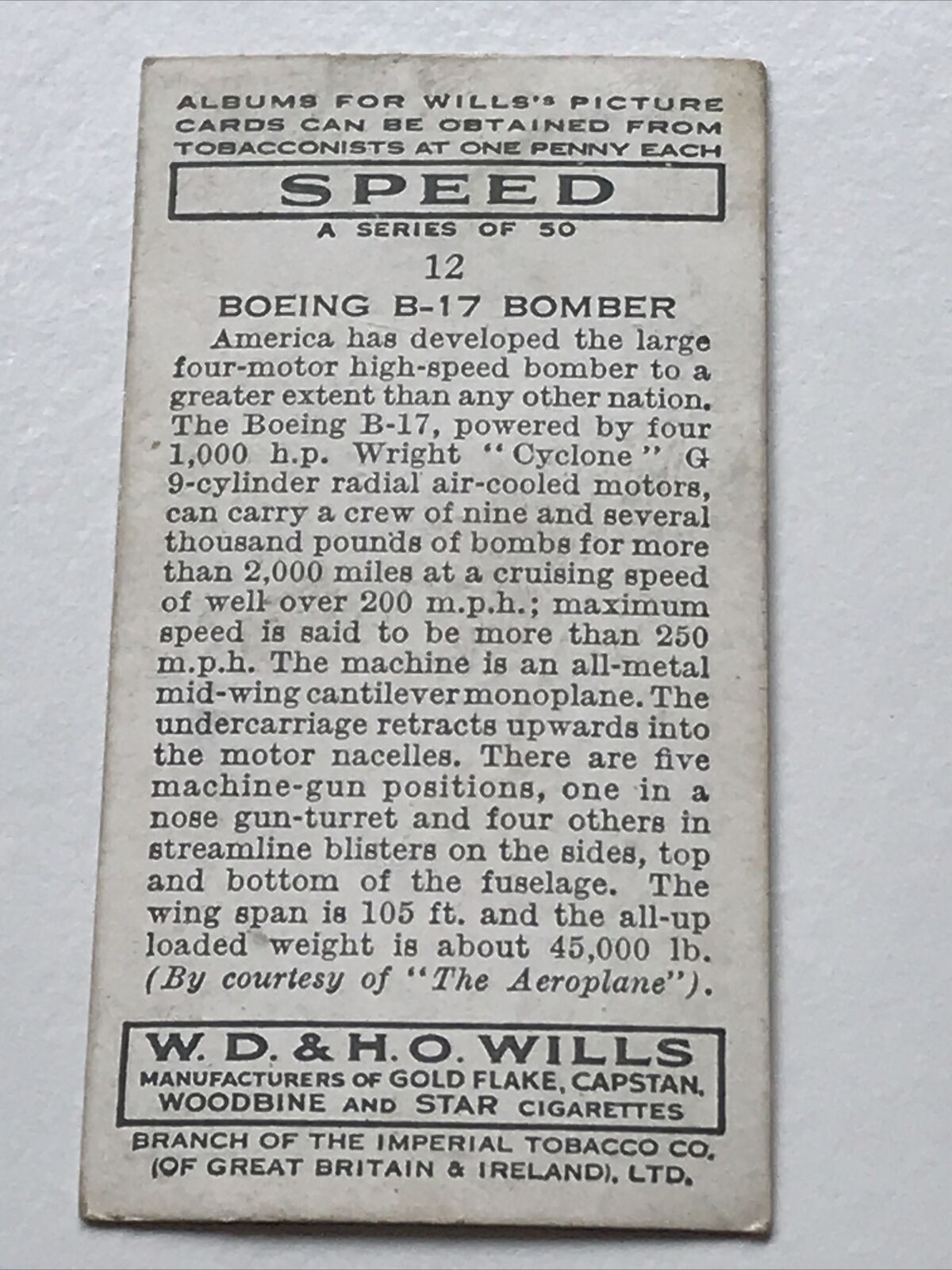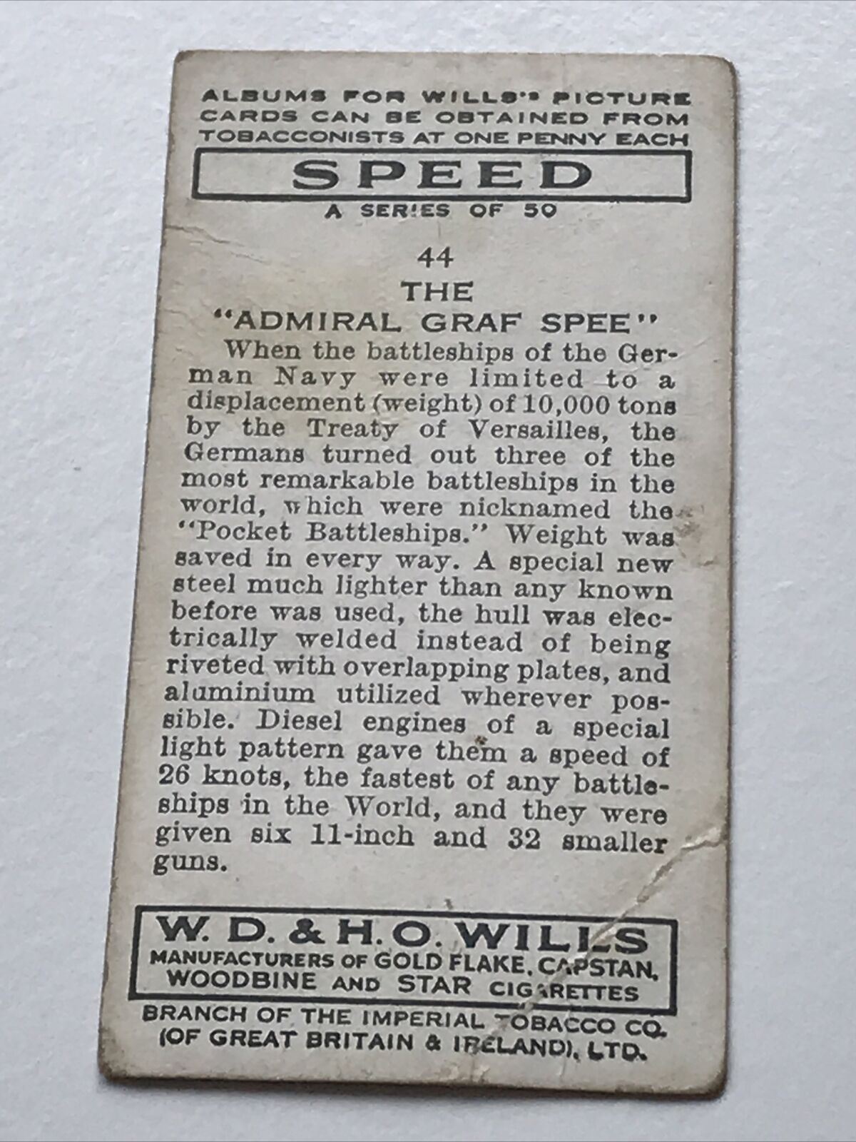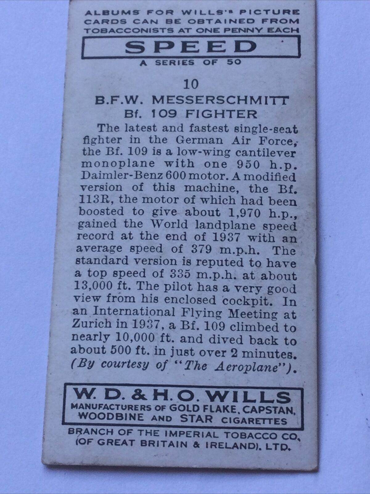 Wills Cigarette Card - SPEED - 2nd Series 1938 - Sold Individually - Pick from the drop-down menu