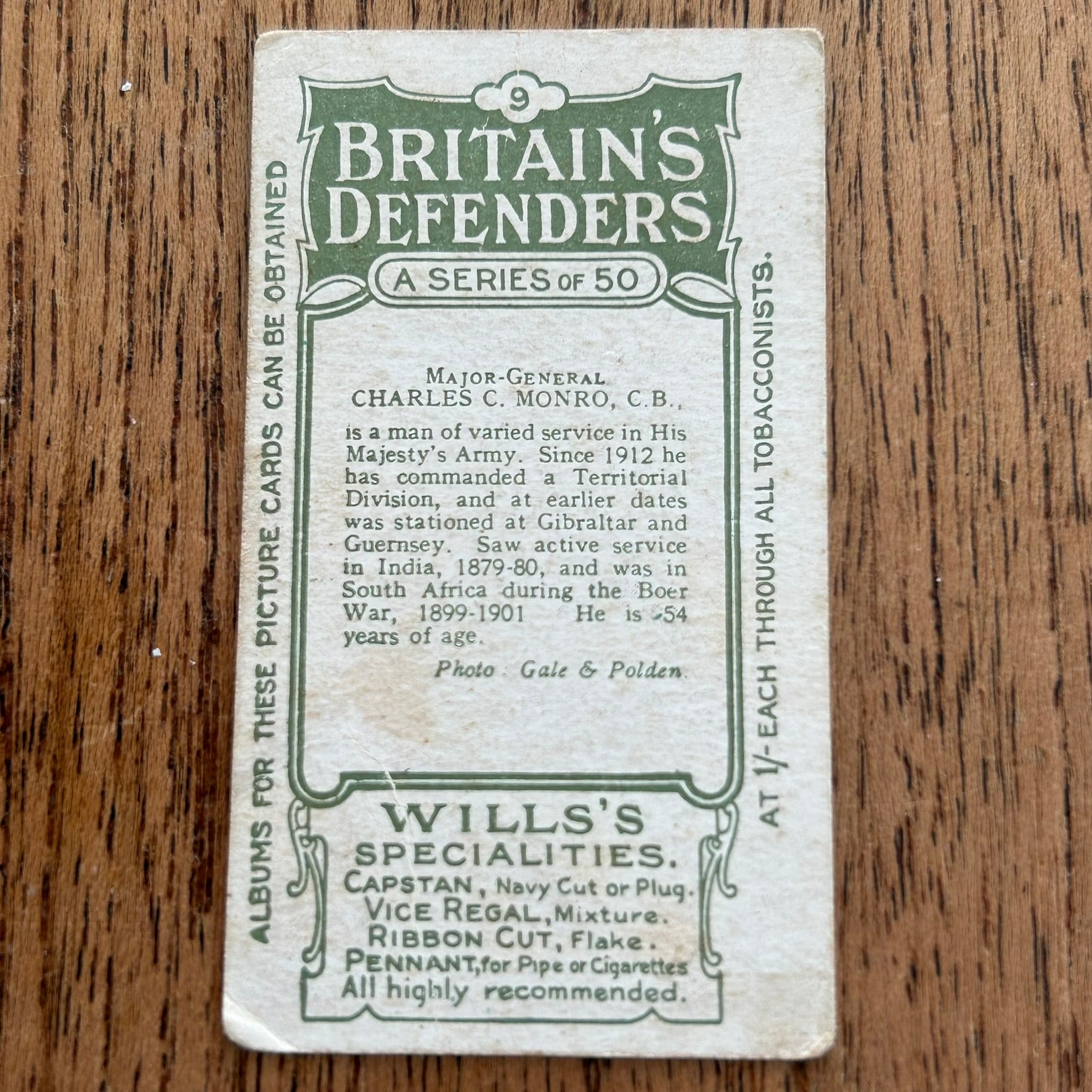 Wills Cigarette Cards - Britain's Defenders (Green back) - 1915 - Sold Individually - Please pick from the drop-down menu