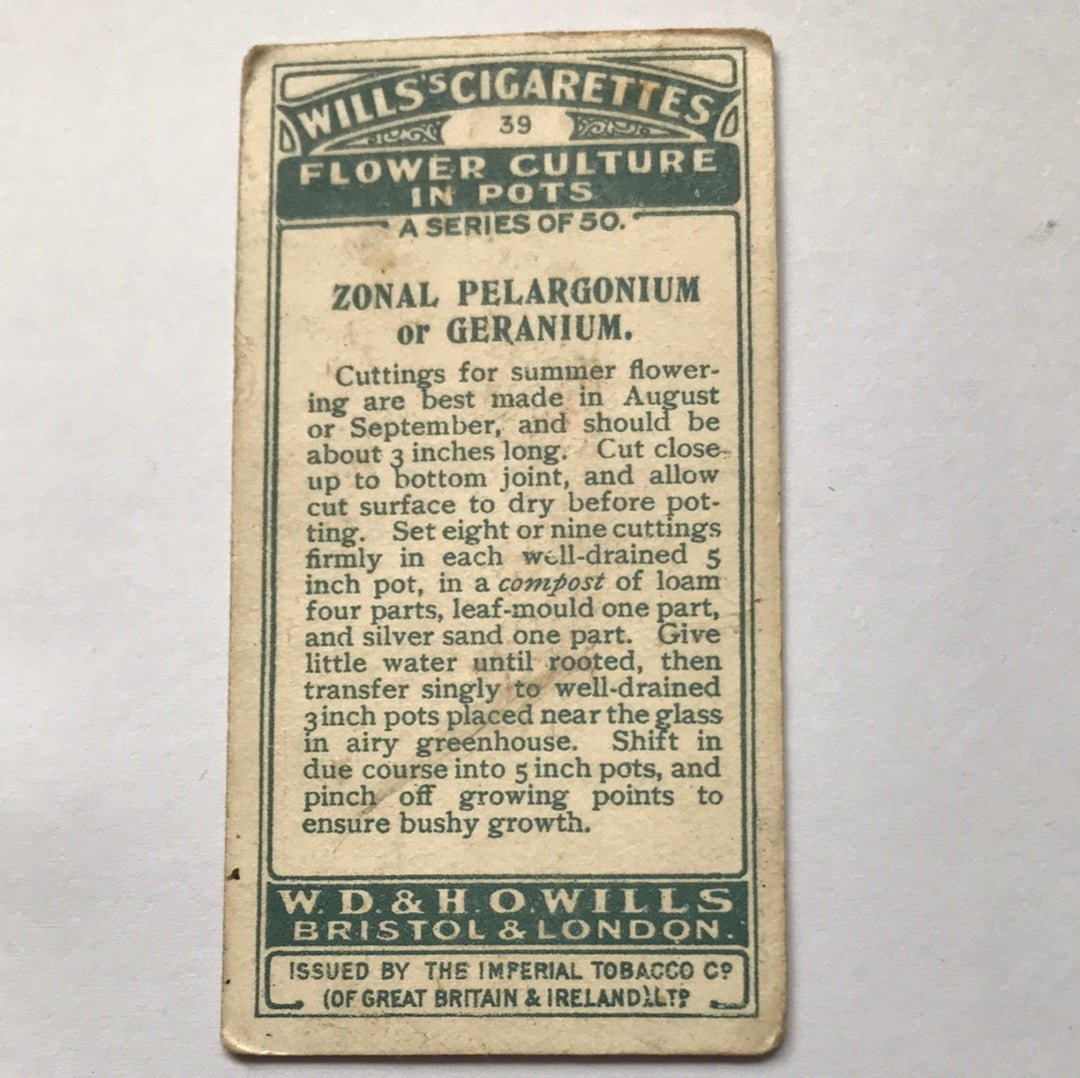 Wills Cigarette Cards FLOWER CULTURE IN POTS Sold individually - take your pick - 1920s 1925
